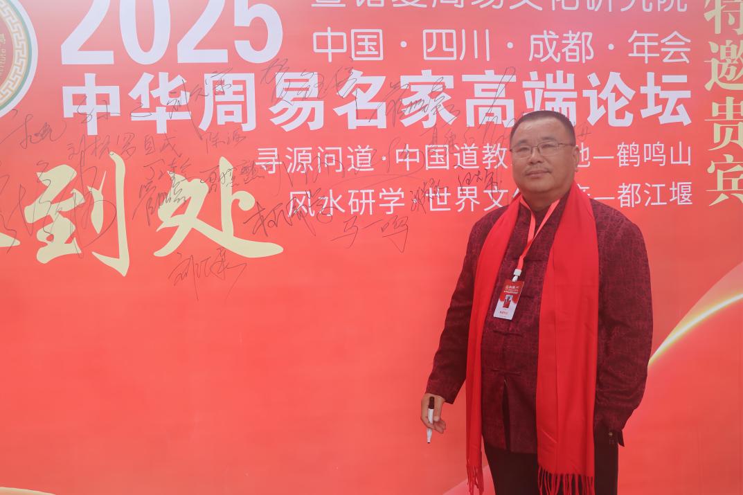 2025年11月6日,第七届中华周易名家高端论坛在成都鹤鸣山盛大开幕,现场气氛热烈而庄重。明月堂易道文化公司董事长、诸夏周易文化研究院常务副院长汪承白先生,以其诚挚的话语,为此次盛会送上了美好的祝愿与展望。