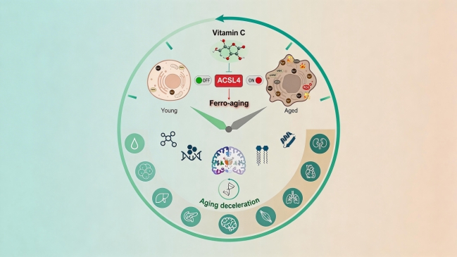 人体衰老藏着一个隐形杀手——铁过载。随着年龄增长,细胞内的铁元素不断堆积,就像发动机进了盐水,会催化油脂发生“脂质过氧化”,也就是通俗说的“生锈”,最终导致细胞功能彻底衰竭。而中科院刘光慧团队的研究找到了破解关键:维C不仅能给细胞“除锈”,还能直接关闭触发“生锈”的总开关——ACSL4酶(相当于细胞“生锈”的启动按钮,一旦开启就会加速细胞老化)。