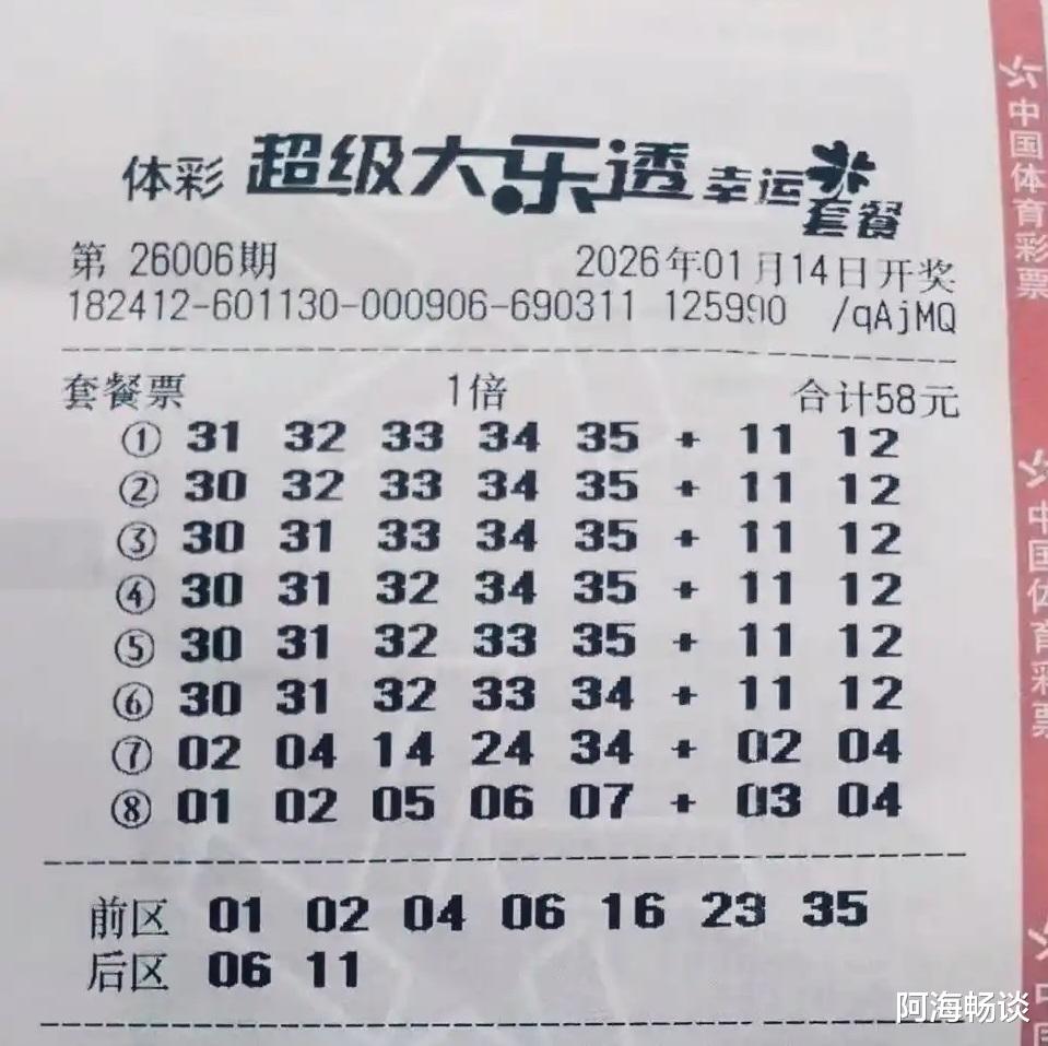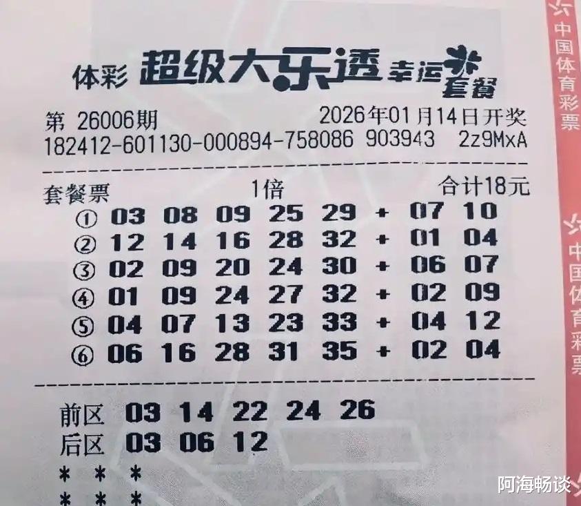 大家好,今天是2026年1月14日,农历十一月廿六,星期三。大乐透第26006期将在今晚开奖,目前已有很多朋友提前晒出了