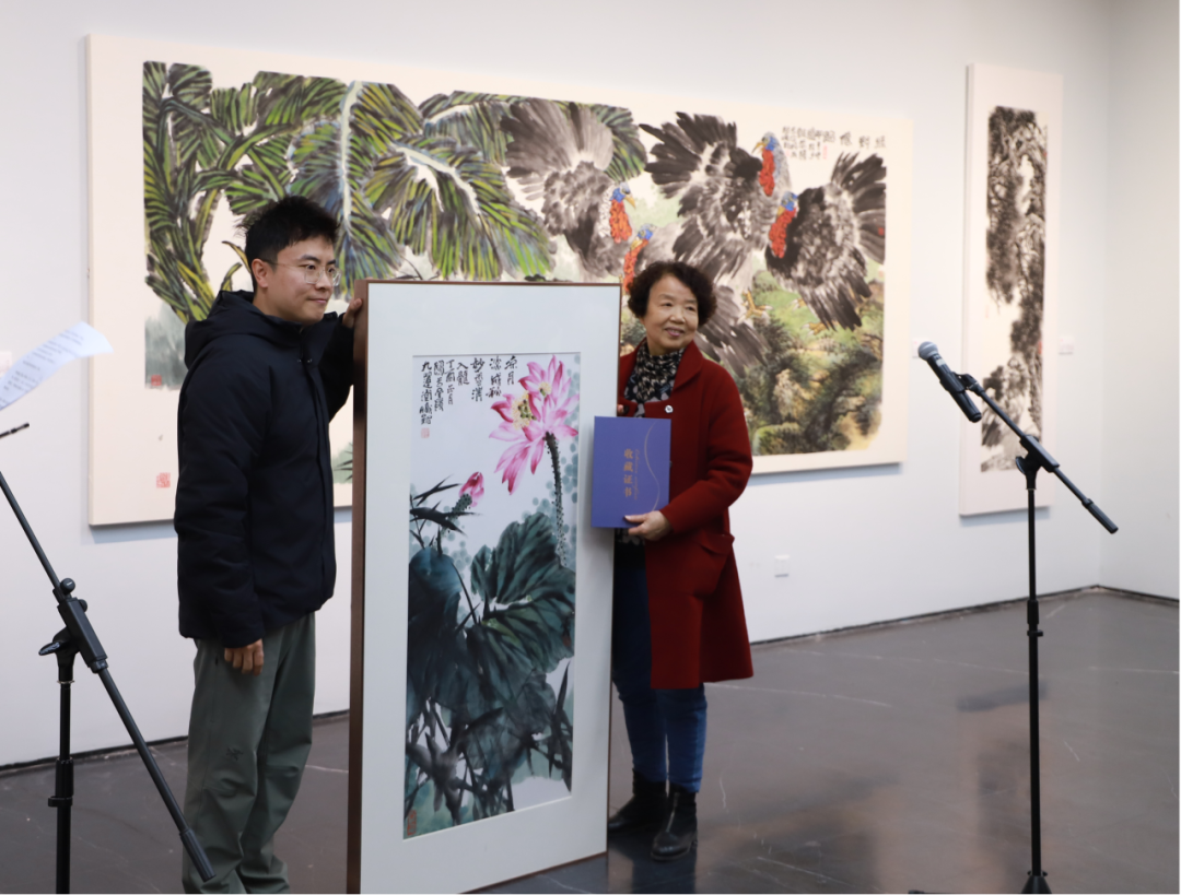 为感谢社会支持,邱炽铭先生家属向画展承办方南京美术馆捐赠作品《凉月淡成秋 妙香清入髓》。徐花石代表南京美术馆接受捐赠作品并颁发收藏证书。