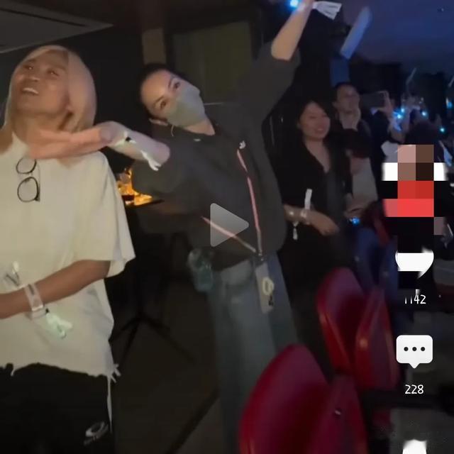 王菲也是一改往日低调的作风,在谢霆锋唱《玉蝴蝶》时,随着歌声翩翩起舞,一副陶醉状。