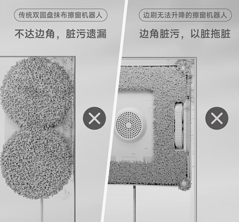 2. 功能堆砌机:有些机型打着“全能清洁”旗号,宣传能擦玻璃、擦瓷砖、擦地板,但核心的擦窗性能却敷衍了事。比如采用普通抹布而非高密纤维拖布,没有喷淋加湿功能,清洁后水痕残留严重。双十二期间搭配“多合一”噱头抬高价格,实际使用中擦窗效果还不如基础款。