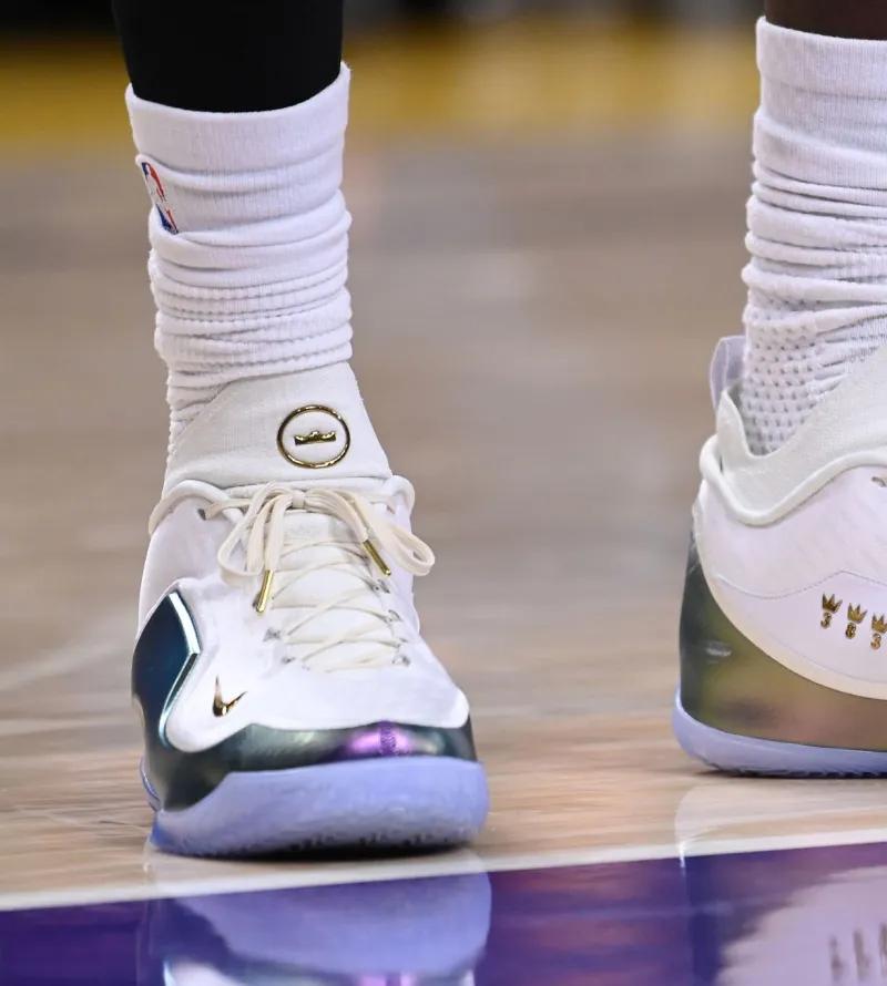 值得一提的是,比赛中詹姆斯上脚了 “写入史册”配色的Nike Lebron23 Elite“For The Record”篮球鞋。这一独特配色背后蕴含着深刻的意义,它旨在向詹姆斯那具有里程碑意义的成就致敬。此前,詹姆斯打破了由贾巴尔保持长达38年的常规赛总得分纪录,这一壮举震惊了整个篮球界。随着他在常规赛和季后赛的不断征战,他正式加冕成为NBA历史季后赛&常规赛双料得分王。这不仅是他个人职业生涯的巅峰时刻,也是NBA历史上的一个重要里程碑。众多篮球专家和学者纷纷认为,詹姆斯的这一成就代表着他在漫长职业生涯中的持续卓越表现,他用自己的实力和努力书写了属于自己的传奇篇章。