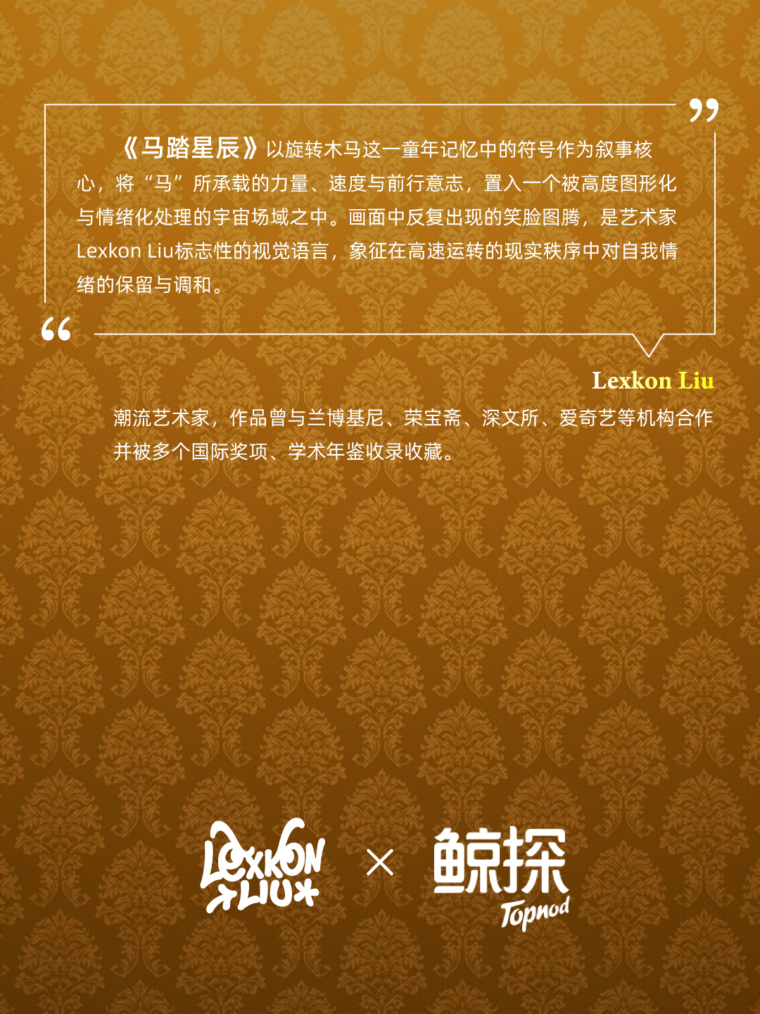 近年来,Lexkon Liu持续探索艺术创作与数字媒介的融合方式,其作品曾与兰博基尼、荣宝斋、深文所、爱奇艺等机构展开合作,并被多个国际奖项及学术年鉴收录收藏。《马踏星辰》的发布从产业层面展现了数字艺术在新春文创领域中的表达潜力与发展空间。