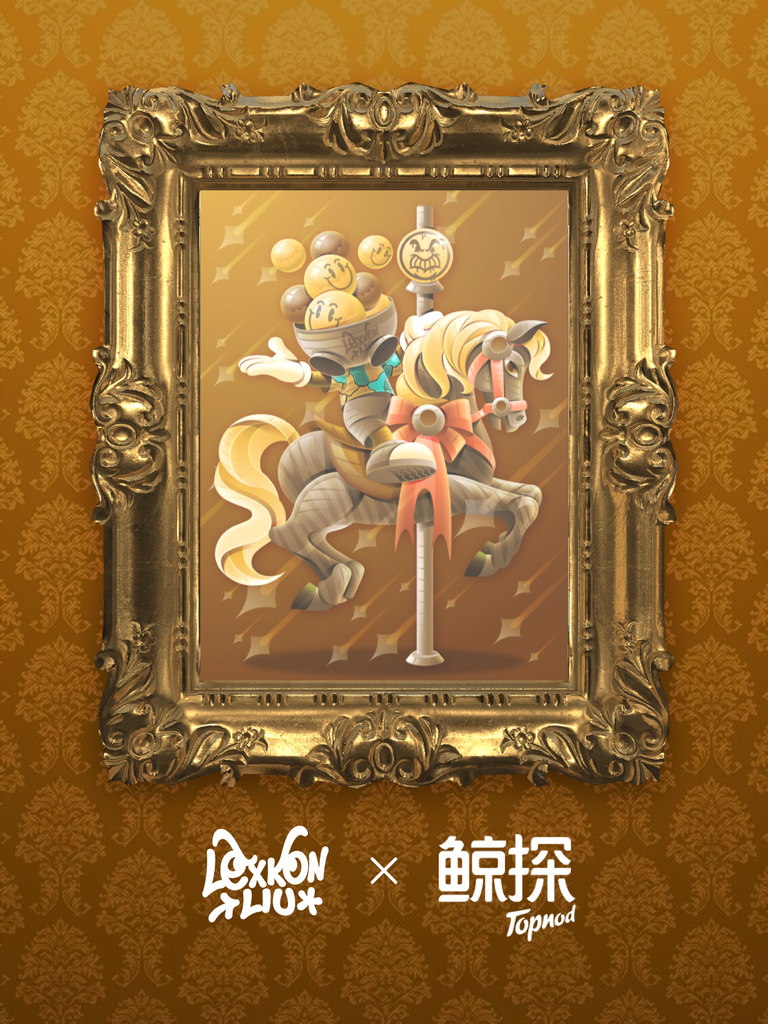 《马踏星辰》以旋转木马这一承载童年记忆的符号作为画面叙事核心,将“马”所象征的行动力、速度与不断向前的意志,置入一个被高度图形化处理的宇宙空间之中。现实与想象在画面中交错,构成一种介于童真与宏大叙事之间的精神场域,隐喻个体在时代节奏加速的背景下,对目标与方向的持续追寻。