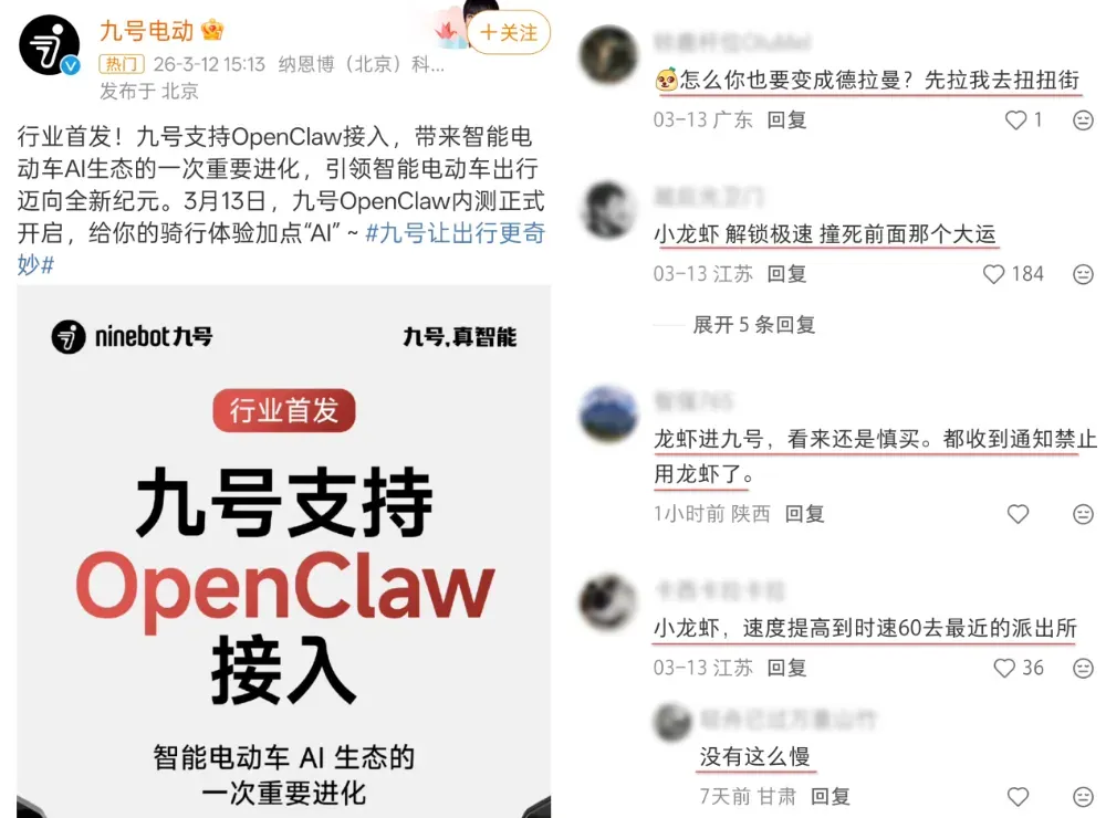 本以为九号电动车宣布支持接入OpenClaw已经够离谱了。