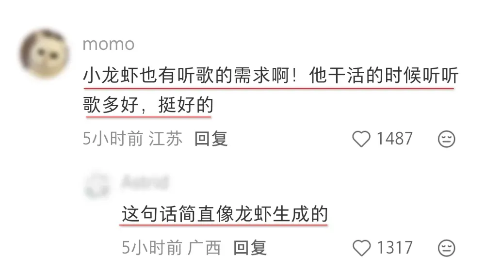 Anyway,除了表达对网易云吃龙虾的疑惑的,还有一些观点也挺有趣。