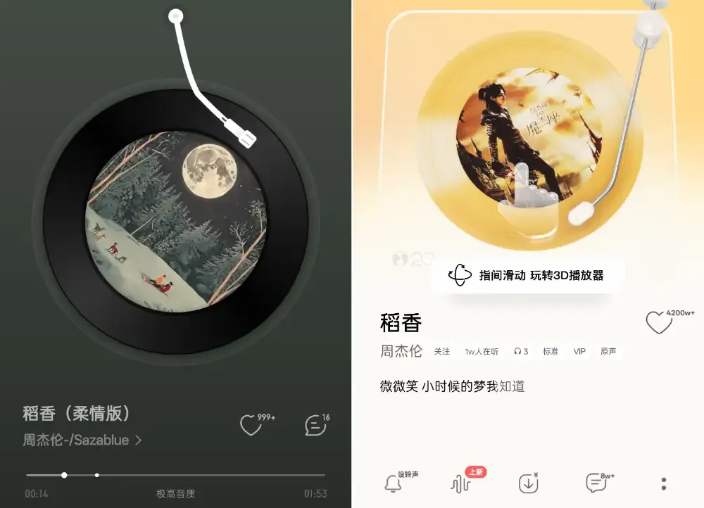 左为网易云上的“盗香”;右为QQ音乐上的“稻香”