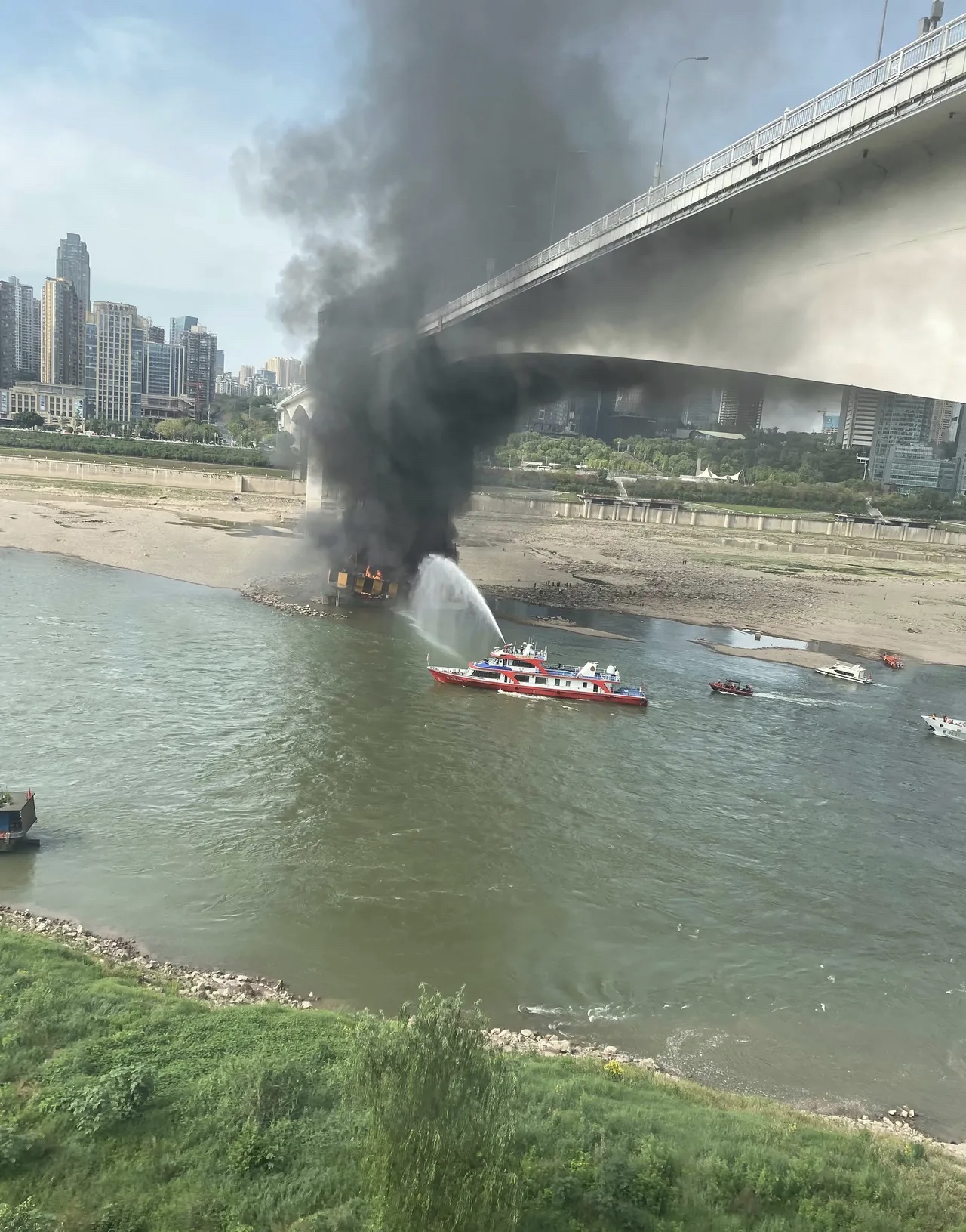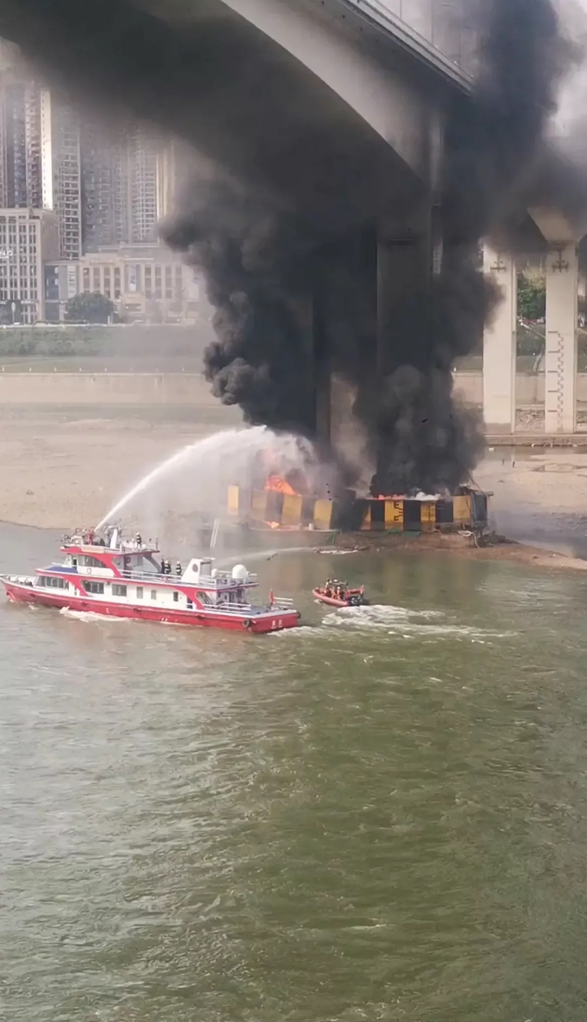 正值五一假日期间,重庆黄花园大桥2号墩在施工时意外起火,猛烈的火势迅速吞没了桥墩。尽管有消防船赶来紧急救火,因为就在江面取水扑救,明火很快控制,但是大火最终仍造成一死二伤的惨烈后果。