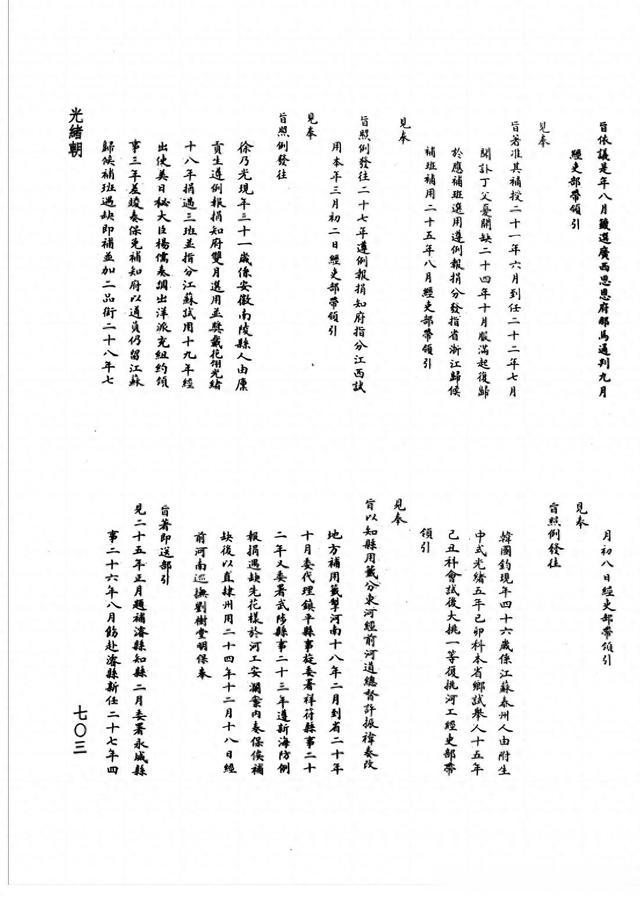 “吏部带领引见”,这是清代中下级文官(京官五品以下、外官四品以下)在授官、考核或者升调时,由吏部官员引导至皇帝面前接受当面考察问话的制度。引见皇帝之前,吏部必须预先将该官员的履历制成绿头签报送皇帝,然后按批次编排引见顺序。经过皇帝的当面考察,朝廷决定以知县的官阶分配工作。