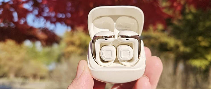 该耳机的充电盒外覆科纳皮,内里采用仿生麂皮材质,触感细腻柔和,提升了整体质感。耳机机身运用NCVM工艺,视觉上简洁大方。佩戴方面,采用0.6mm超纤细柔性记忆钛丝搭配亲肤液态硅胶,结合人体工学设计,不仅柔软舒适,还能稳固贴合耳部,不易掉落。单耳克重约9.7g,长时间佩戴可能会让耳朵感到一定负担。