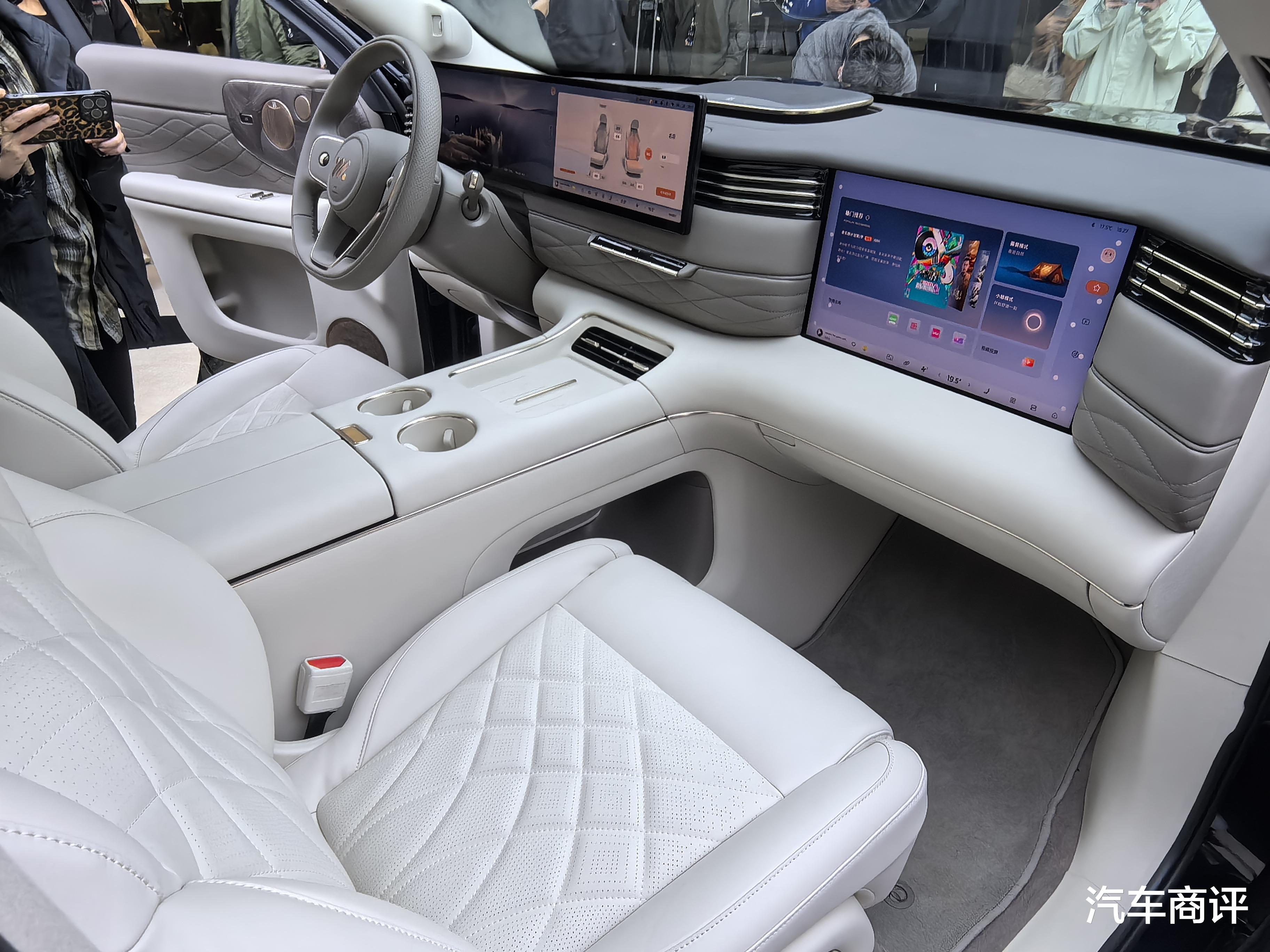 进入车内,整个座舱采用了前中后三层式分布,27.1英寸贯穿式仪表、15.6英寸副驾娱乐屏、贯穿式出风口、实体按键等错落有致。同时,还有支持零下6度到零上50度温度范围的冷暖箱,后排21.5英寸4k娱乐屏,全球首搭4D机械按摩座椅,B&O音响系统等,给你满满的奢享体验。
