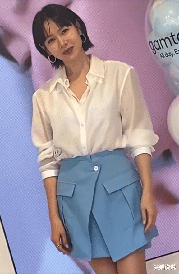 4月25日,韩国女星孙艺珍受邀出席某品牌的活动。孙艺珍穿着白色的雪纺长袖衬衫搭配海蓝色的短裙亮相活动现场,她戴着金属耳环搭配银色细跟高跟鞋,搭配她那中分刘海短发,看起来很有成熟的御姐范。