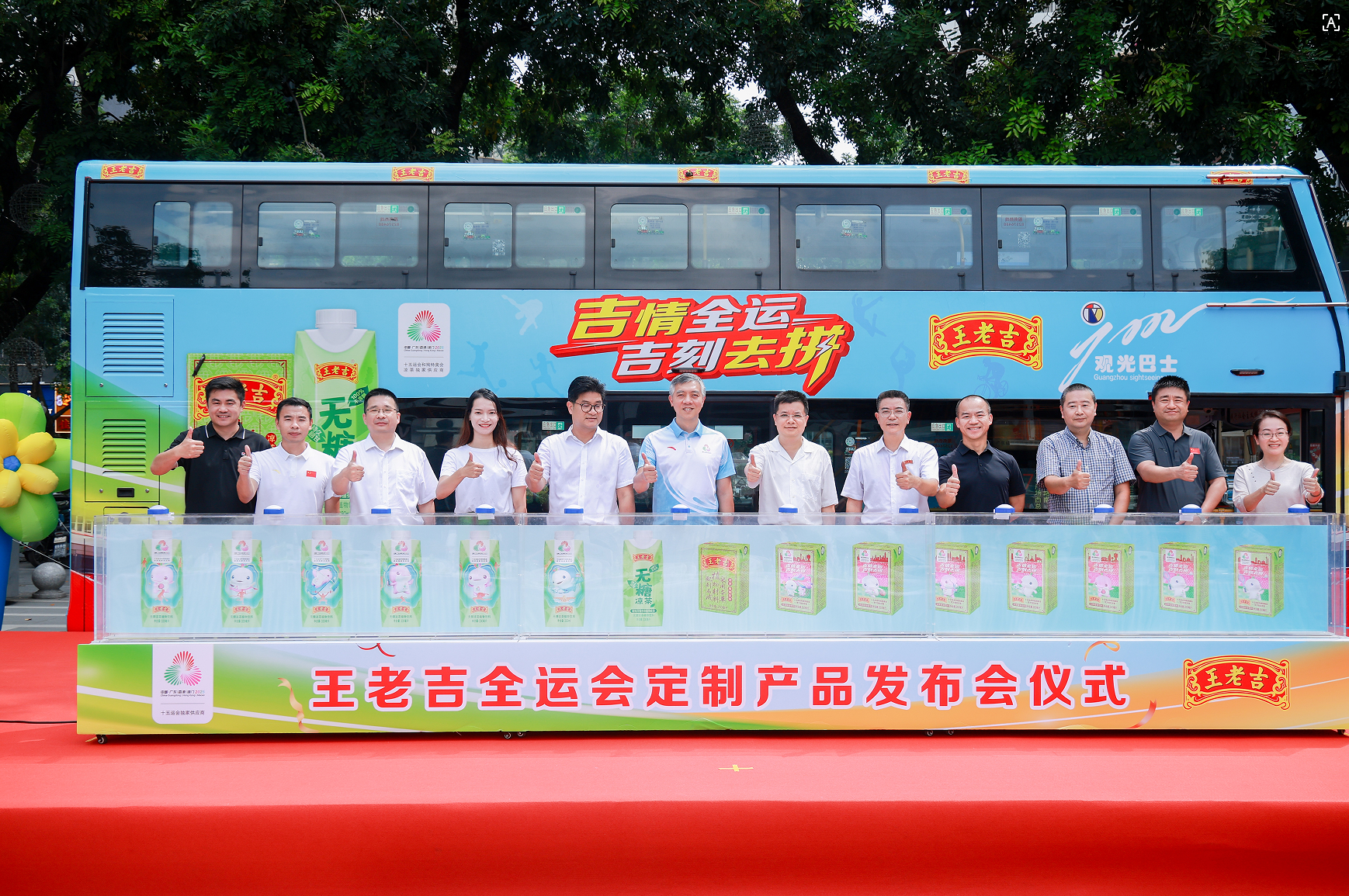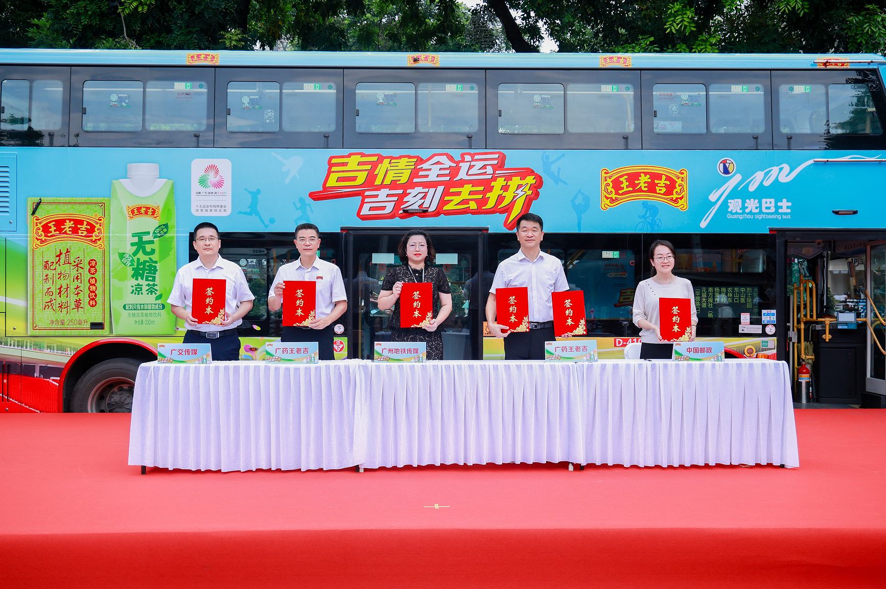 9月29日,王老吉药业于广州举行的“吉情全运 吉刻去拼”线下启动仪式上,与广交传媒跨界合作、赋能全运,推出了“吉运巴士”十五运会主题观光巴士。