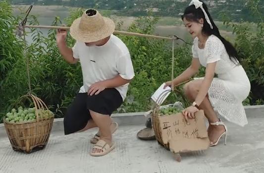 只见男性友人挑着两担子李子,选择了一个人少、风景好的地方后,就将肩上的担子放下了,唐小鱼也顺着蹲下,并放上了一个写好价钱的纸牌和称,看样子网红唐小鱼如此辛苦的上山是要卖李子。