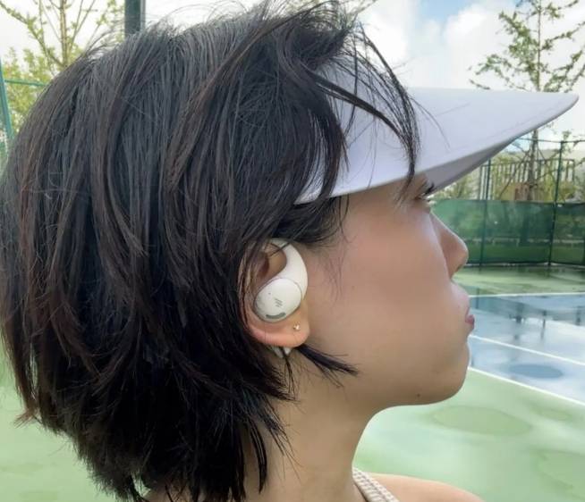 单耳10g,配备四档调节的SoftCore柔性云弧耳挂,亲肤硅胶材质耐弯折,搭配IPX5防水性能,运动时佩戴稳固不晃,不过重量在开放式耳机中偏沉,长时间佩戴后耳廓易有轻微压迫感,耳挂体积略大也导致部分耳型贴合度一般。