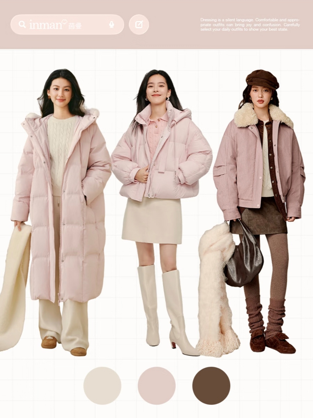 粉雾感色调减龄10岁!长款羽绒服+米白针织套装,约会穿搭温柔氛围感拉满;短款羽绒服+短裙,学院风甜妹上线,毛绒内胆+翻领设计,保暖又可爱~