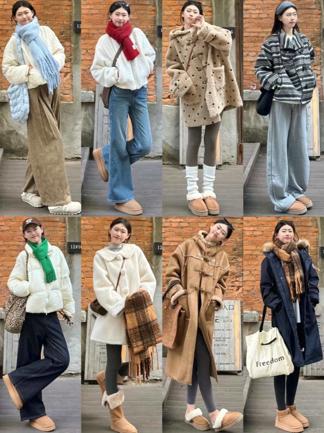 配饰也是点睛之笔,一顶毛线帽、一条围巾或一双雪地靴,都能让你的冬日穿搭更有氛围感。