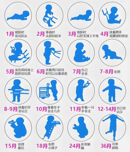 1. 大运动(翻爬坐立走跑跳):出现这些情况要警惕