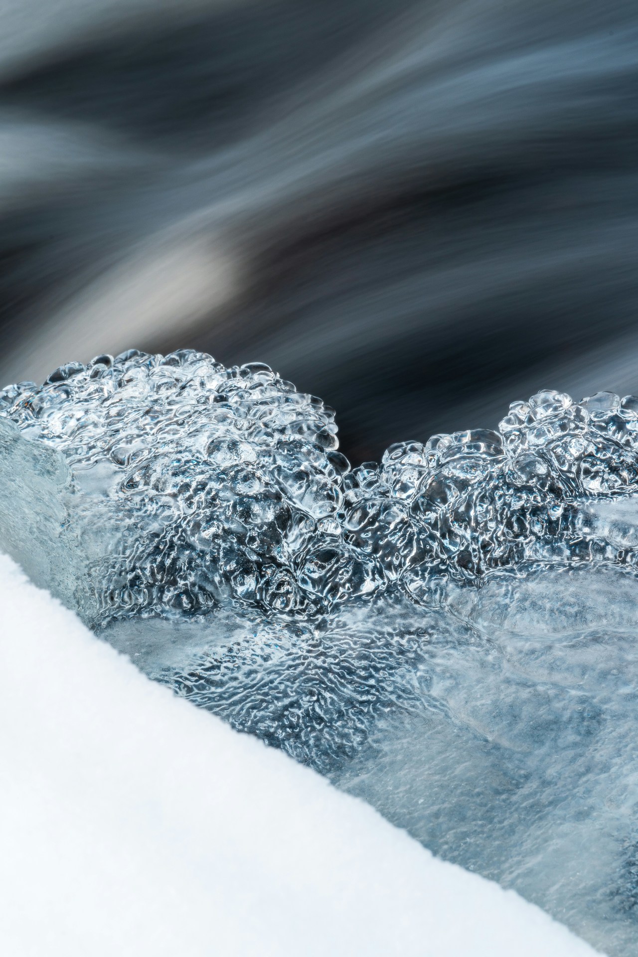 气泡冰:放低机位,贴近冰面,利用侧光或逆光,让气泡的轮廓和晶莹感凸显出来。