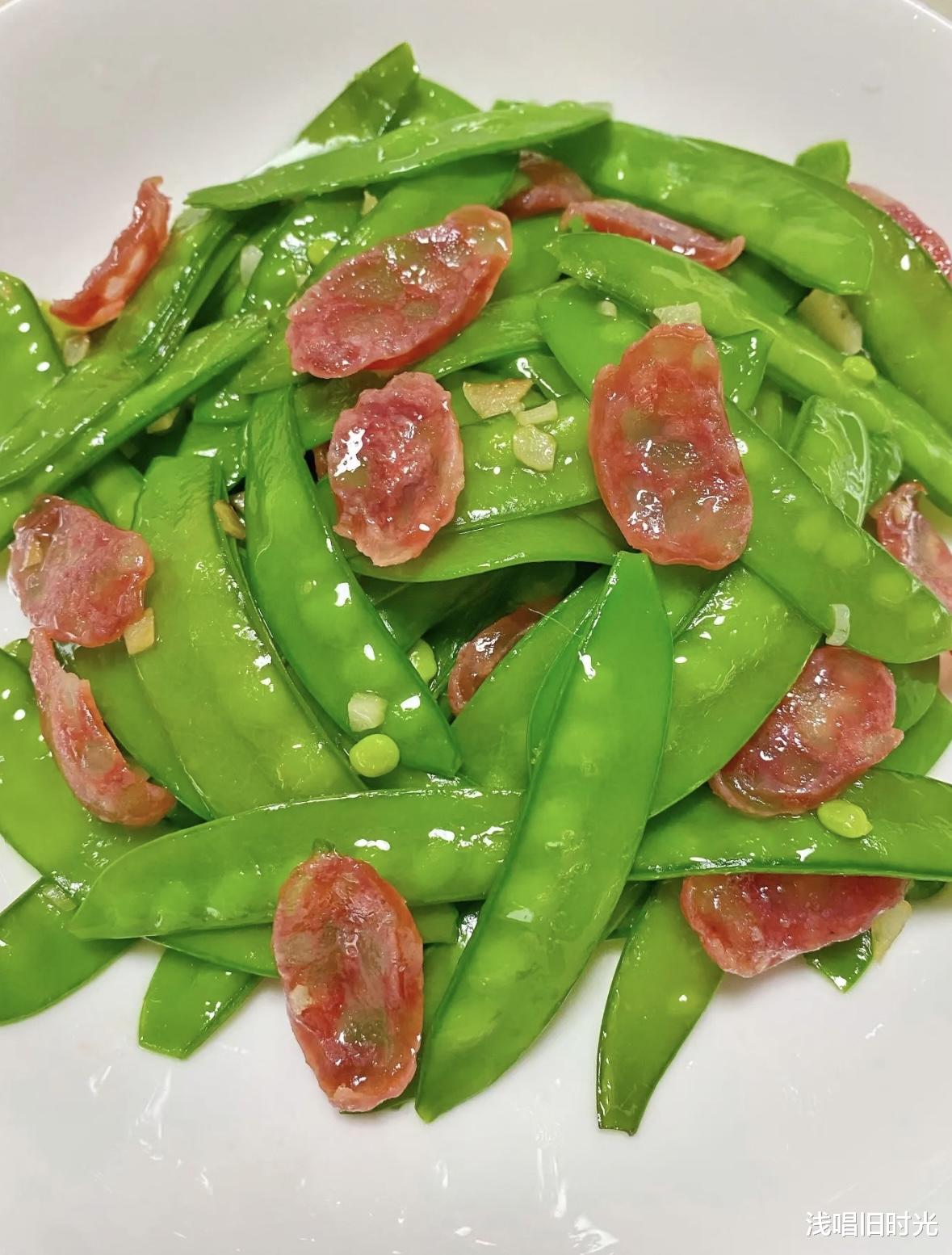 🥓 经典搭配①:荷兰豆炒腊味(油脂与清甜的二重奏)