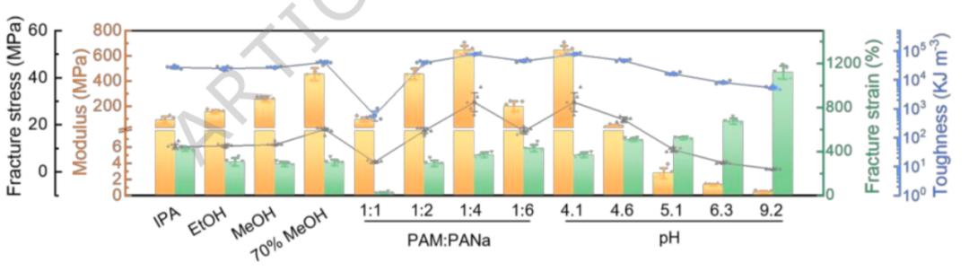 通过精确调控纺丝溶剂的种类、两种高分子(PANa和PAM)的配比以及溶液的酸碱度(pH),研究人员可以控制纤维内部纳米结构的形成,从而定制不同性能的纤维