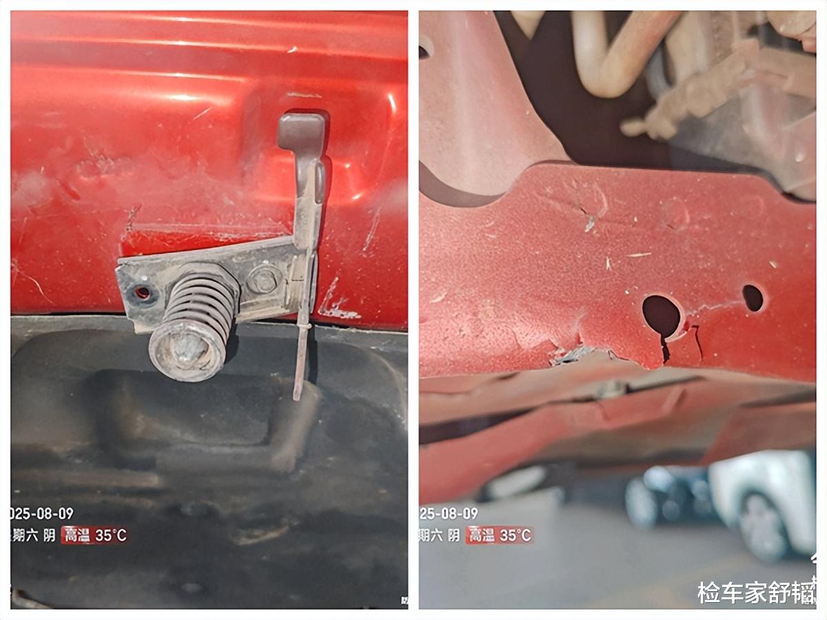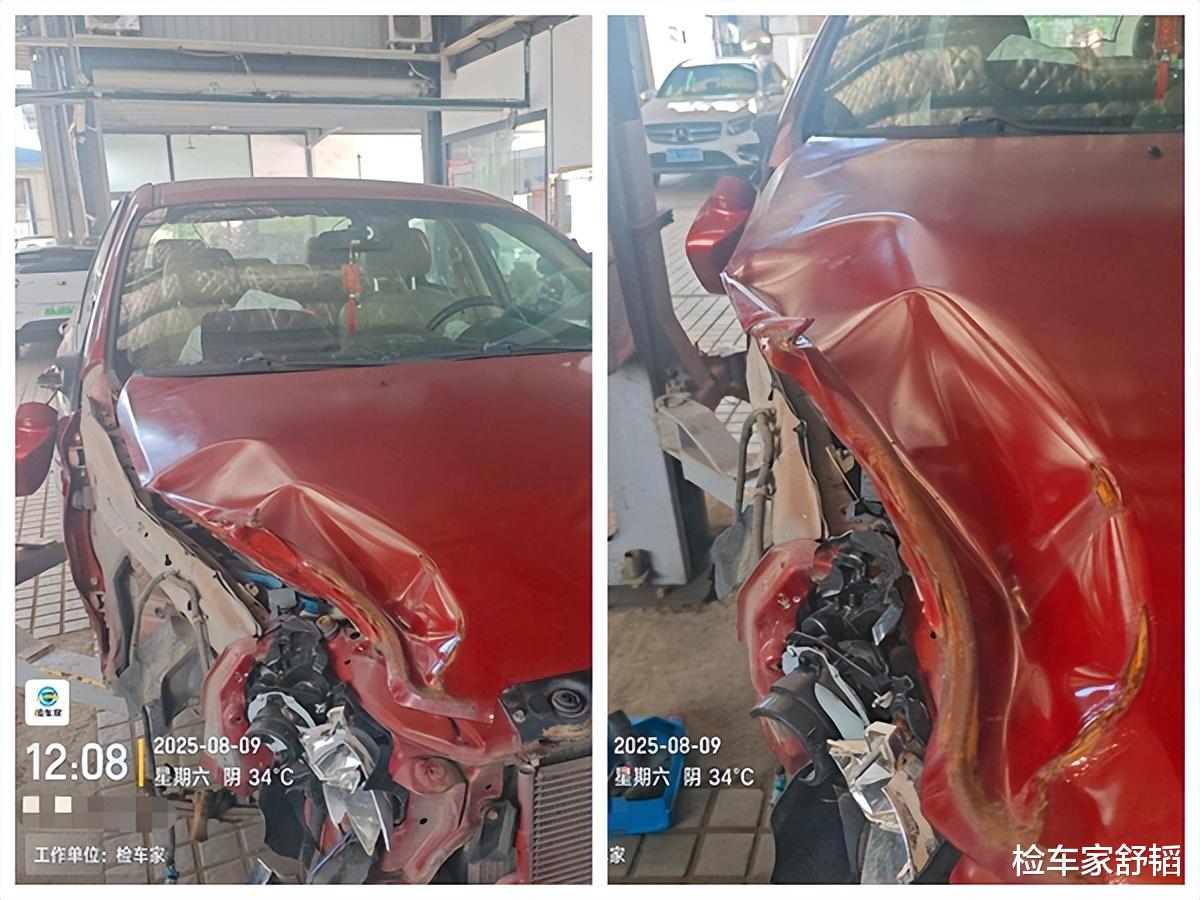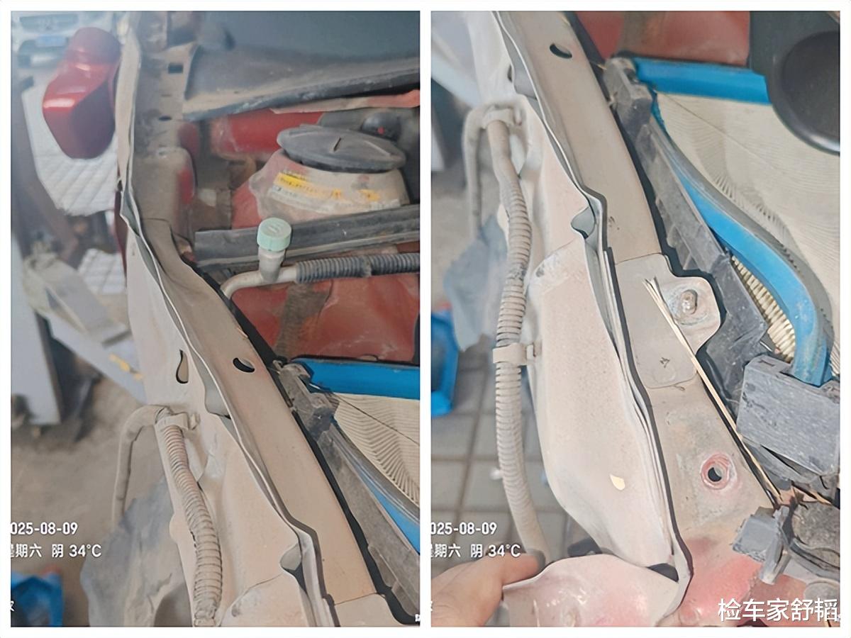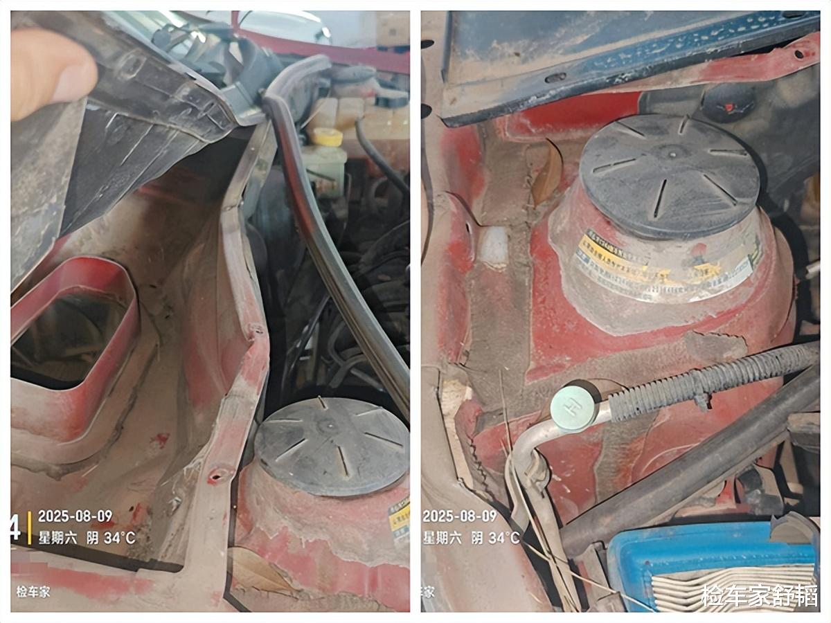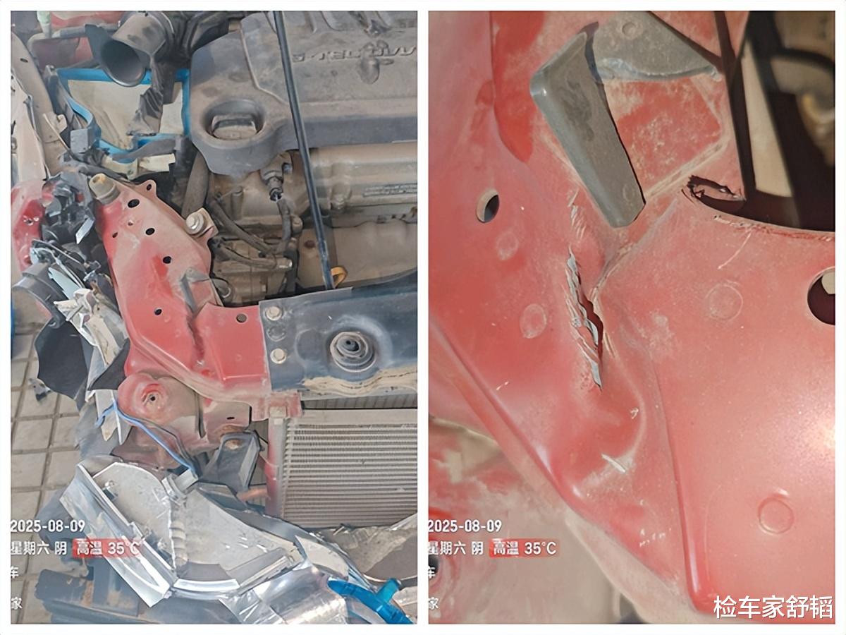 往后看,机舱防火墙弯曲变形,减震包也受到挤压变形,这么看下来,十多年的旧车,修理费比车本身还贵啊!