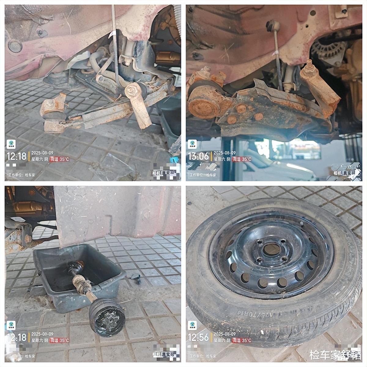 下面的悬挂件损伤严重,拉杆、摆臂、轴承、减震、羊角全部断裂损坏,轮毂轮胎也好不到哪里去。