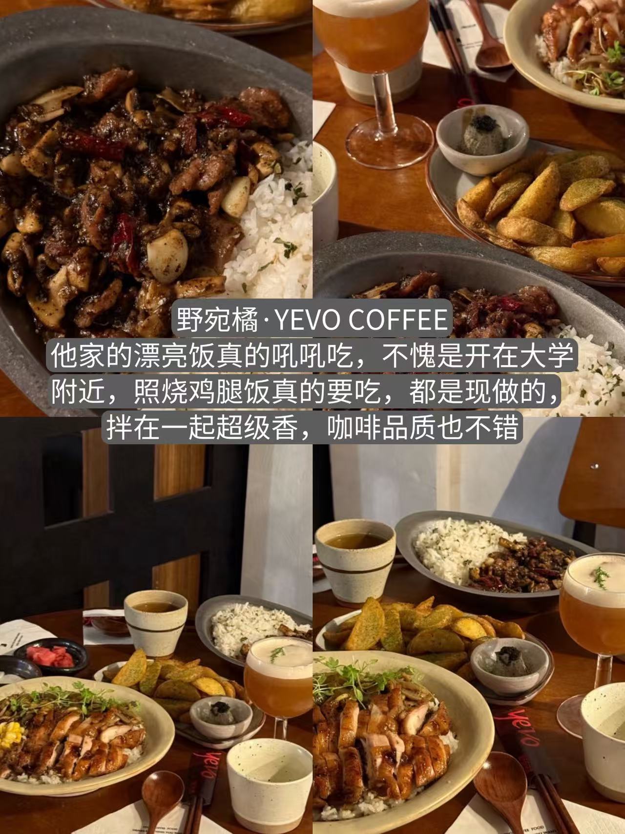 他家的漂亮饭真的吼吼吃,不愧是开在大学附近,照烧鸡腿饭真的要吃,都是现做的,拌在一起超级香,咖啡品质也不错