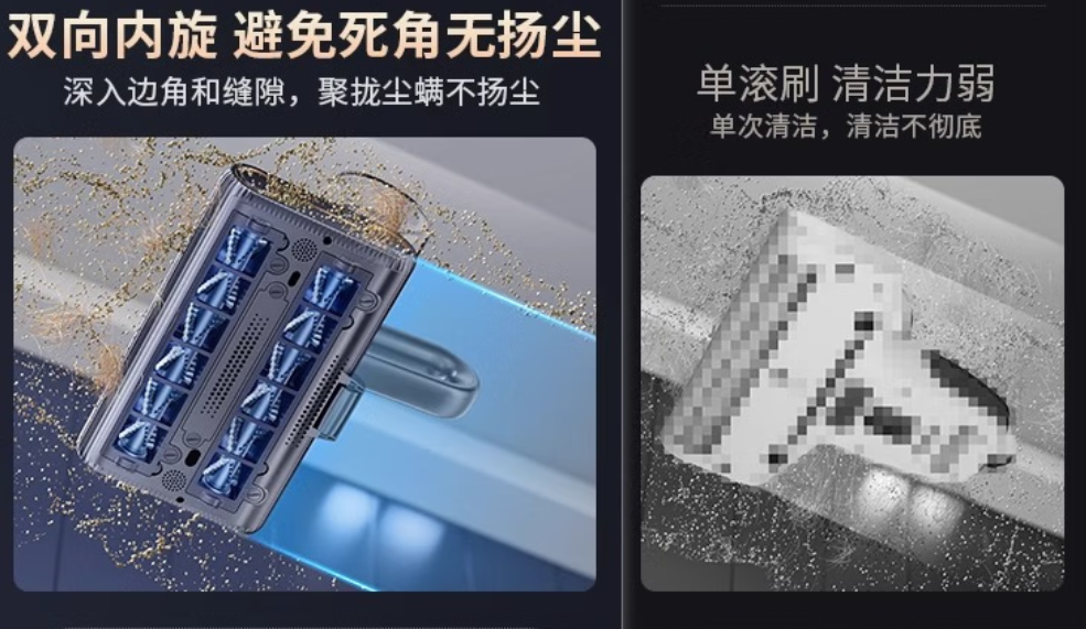 真正有效的除螨仪,需要靠“拍打 + 强吸力”两套系统协同工作。但一些低价产品的拍打频率做得很低,拍震幅度也弱,只能拍掉表面一点点灰,深层的根本动不了,只是在“假装努力”。