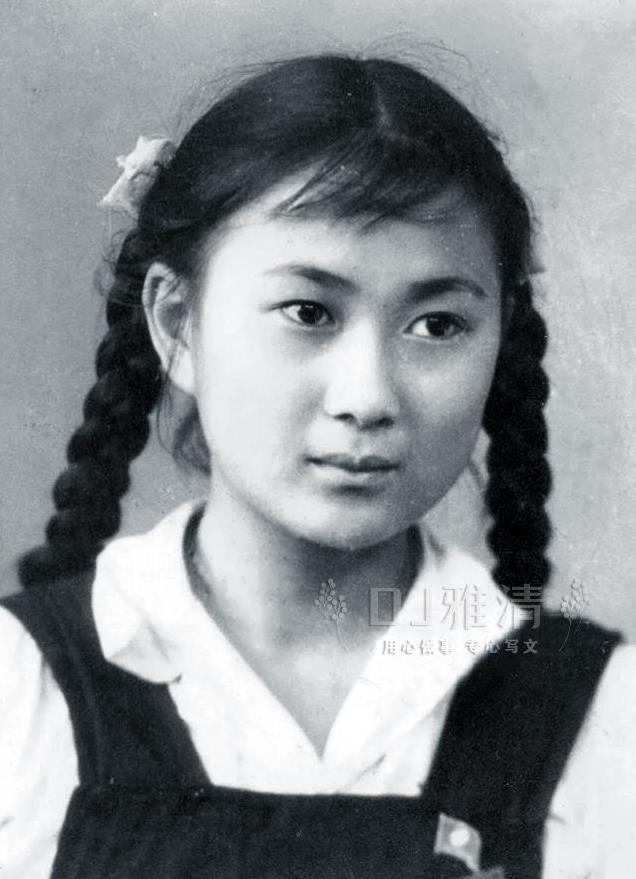 她的典型的上海姑娘,从中我们可以看到那个年代美少女的装扮和精神面貌——特别淳朴,又特别真实。那两条粗黑的辫子,是那个年代姑娘的标配,多健康美丽啊。