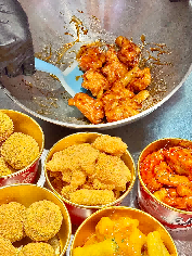雪花芝士炸鸡真的巨巨巨好吃!!还有泰式甜辣口味的,芝士球奶香奶香的外皮很脆,中间糯叽叽的嘎嘎会拉丝的~