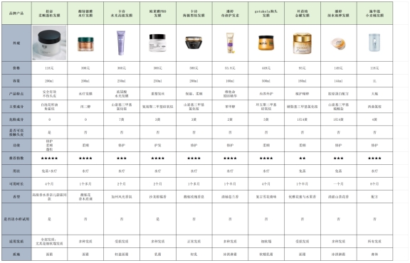 在深入探讨测评结果之前,让我们先来一览这几款发膜的核心参数: