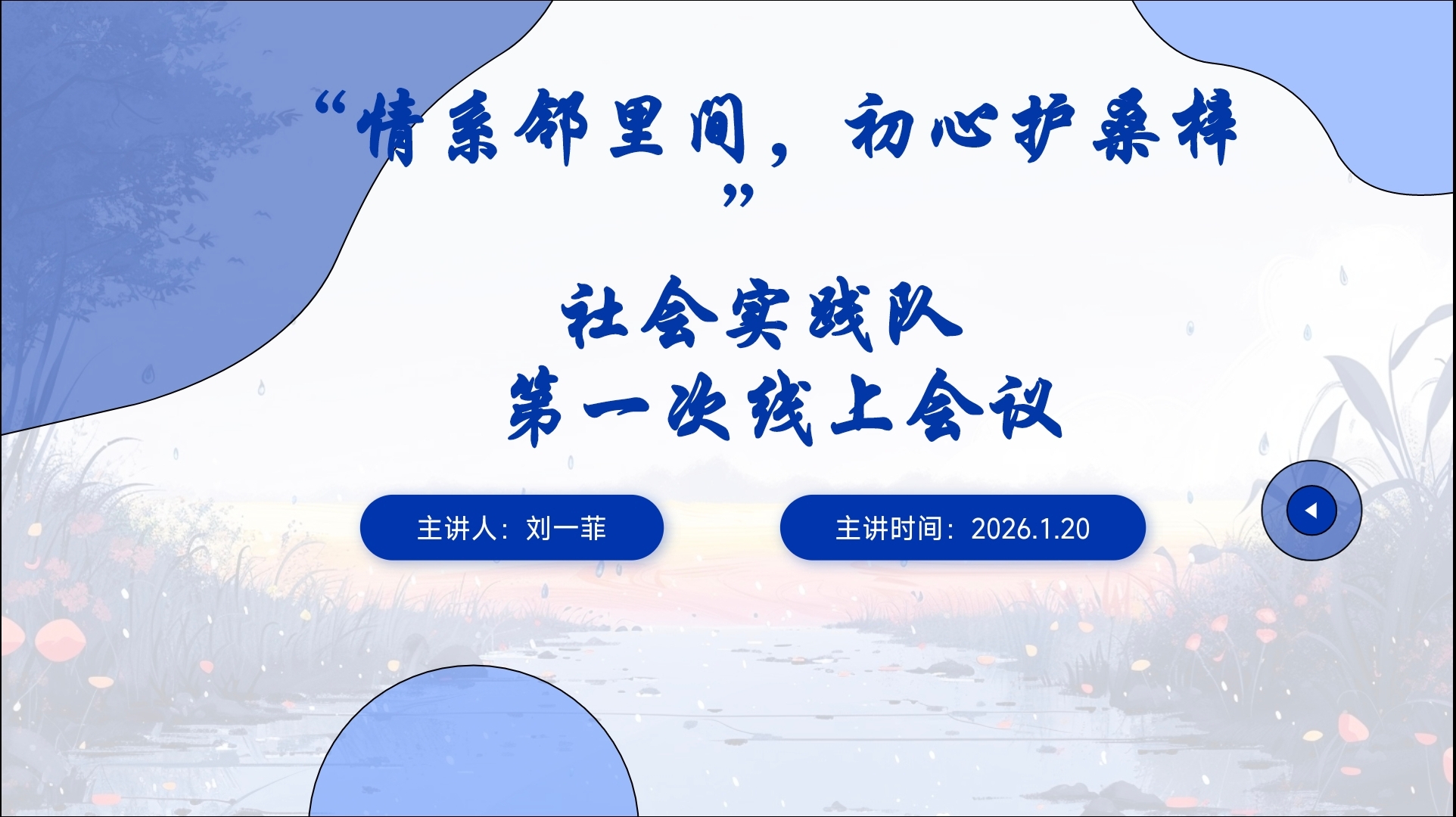 情系邻里暖人心,初心如磐护桑梓。本次线上会议的顺利召开,不仅让实践队全体成员明确了实践目标与工作方向,凝聚了团队共识与力量,更为后续高效开展社区志愿服务奠定了坚实基础。接下来,“情系邻里间,初心护桑梓”社会实践队将以实际行动践行志愿精神,深入社区、扎根邻里,用青春汗水浇灌家乡沃土,用暖心服务书写青年担当,为构建和谐邻里关系、推动社区高质量发展贡献青春力量。