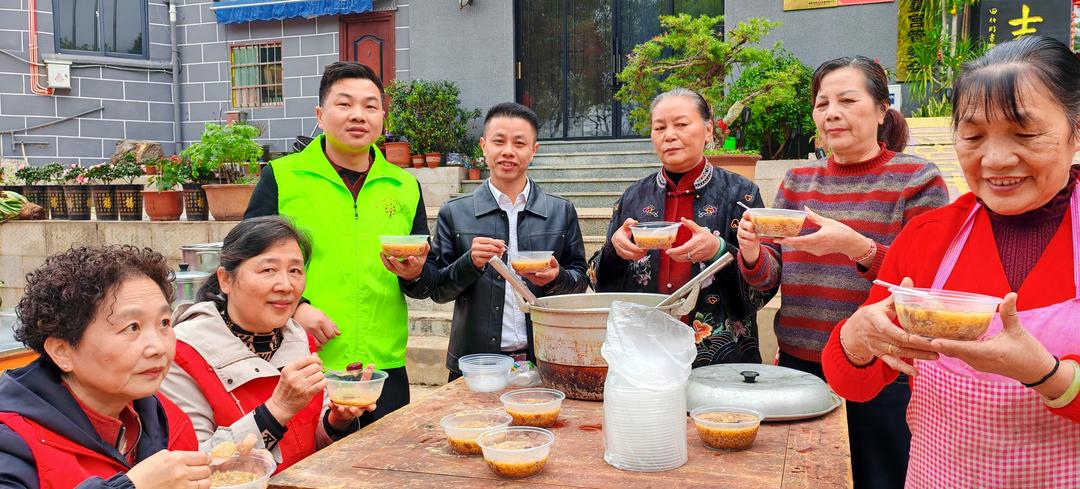 活动现场庄重有序、暖意融融。中国三公主文化研究院院长、福州南台三公主祖庭管委会主任郑三玲,祖庭管委会副主任郑山君,福州南台妈祖殿董事会董事长、福延公益副理事长林庭语全程统筹组织,带领义工团队精心筹备、细致服务。为让老人们吃上香甜暖心的拗九粥,刘碧英、魏珠玉、林秀英、陈丽珍、兰英五位义工早早忙碌,精心清洗食材、细心熬煮粥品,以匠心与爱心还原传统风味;林超琴、严美金、杨雅英、林淑芳、黄秀蓉、蒋碧云、郑恩、唐玉英等现场义工分工协作,有序布置场地、引导老人就座、递送福粥,用真诚服务传递温暖,用实际行动诠释志愿精神。
