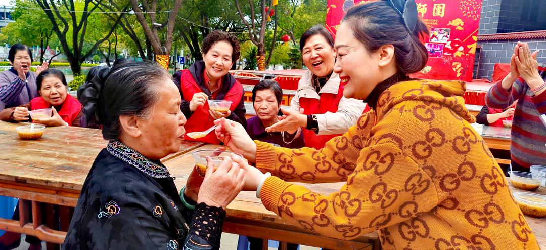 活动中,各方代表与志愿者一同为到场老人送上拗九粥与节日问候,亲切交谈、嘘寒问暖,细致了解老人生活与健康状况,叮嘱老人保重身体、安享晚年。一碗粥、一份情、一句祝福,让老人们倍感温馨,现场欢声笑语不断,处处洋溢着敬老、爱老、助老的浓厚氛围。