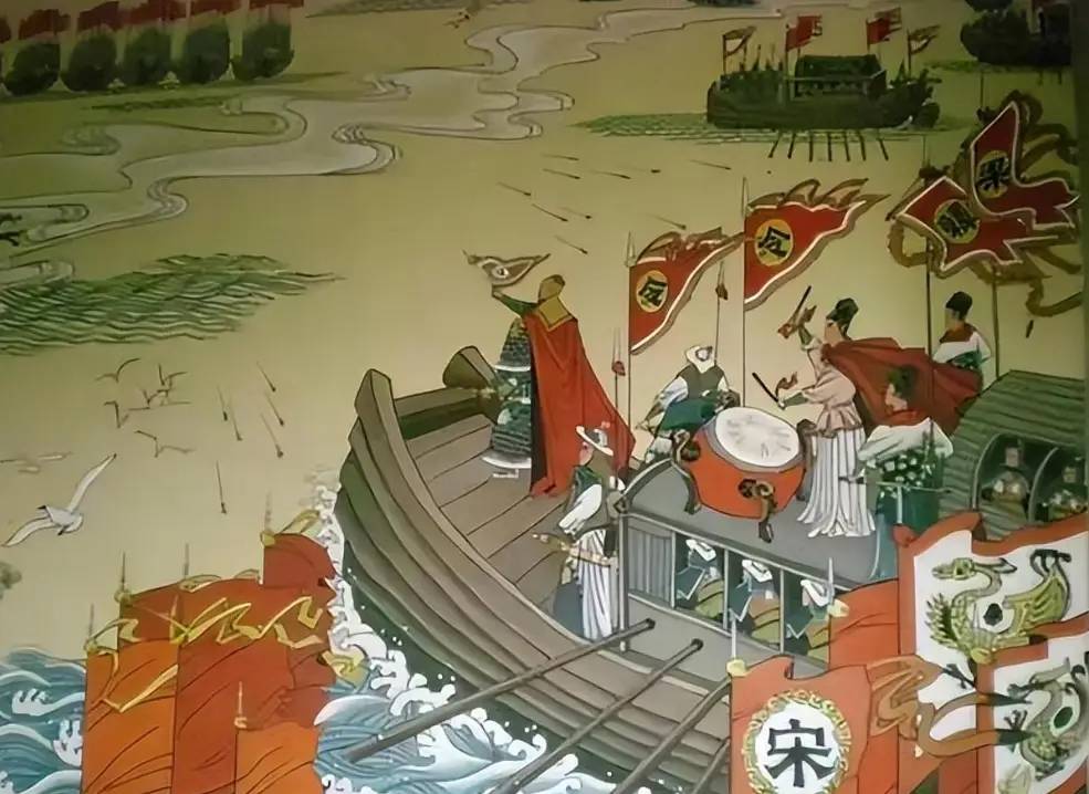 正在宋兵仓皇应敌、力渐不支之际,宋军船队中突然有一艘战船桅顶旗幡断落,顷刻之间,许多舰船的樯旗也随之纷纷降落。