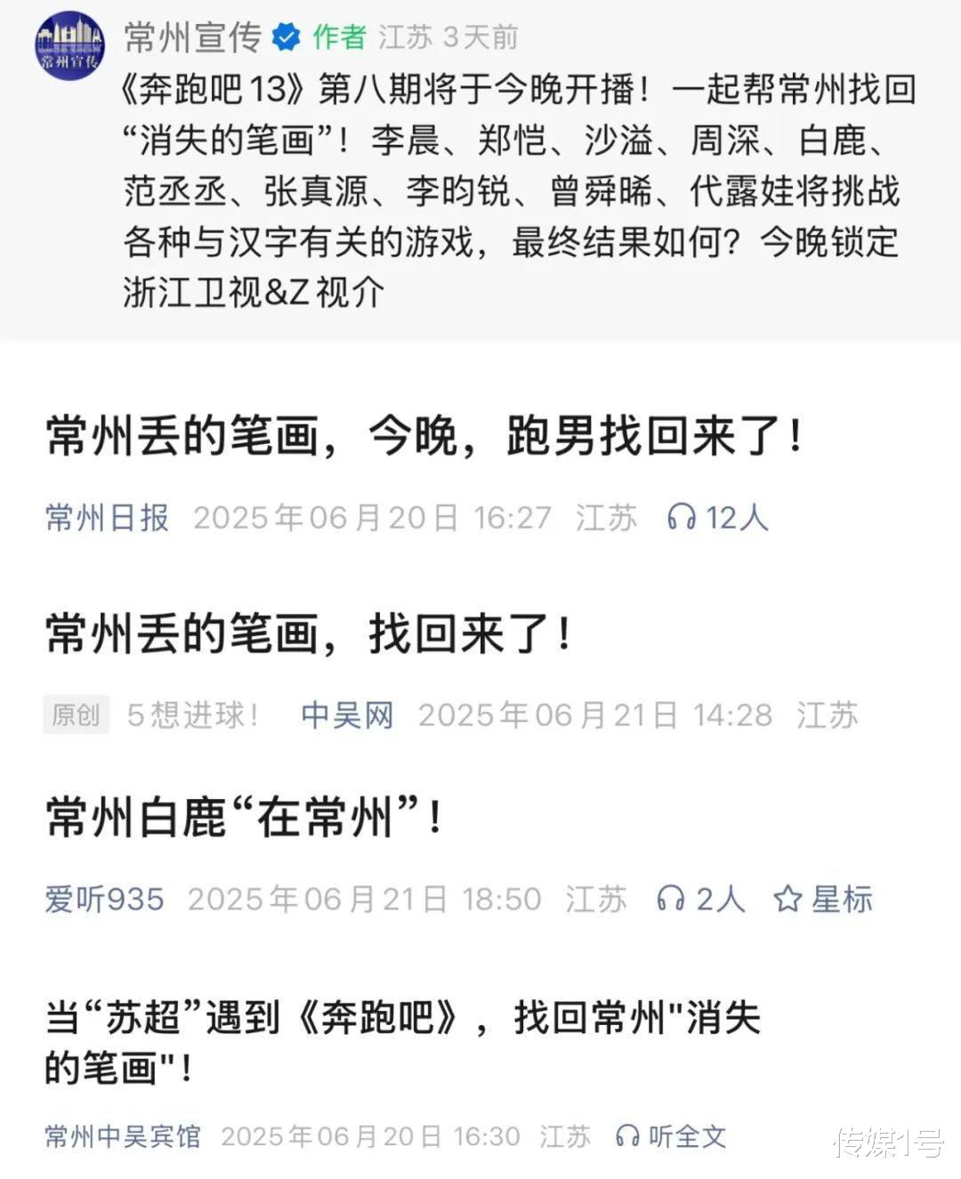 同时,「轻直播+录制+播出」的三段式宣传效应,使得《奔跑吧》对于城市文旅所产生的赋能效应不止于单次的节目播出,而是被嵌入到一个更长线的传播周期之中。从5月初「跑男团」来到常州录制,到6月下旬的正片播出,叠加「苏超」的火爆,常州看似失去了笔画,但却有望在多重流量效应的催化之下成为新晋网红城市。