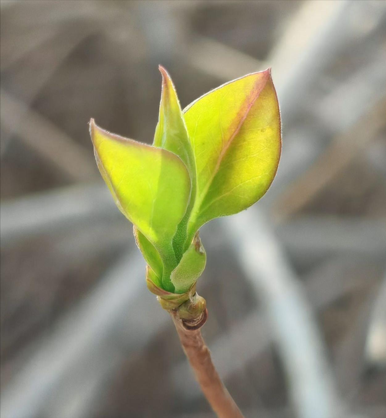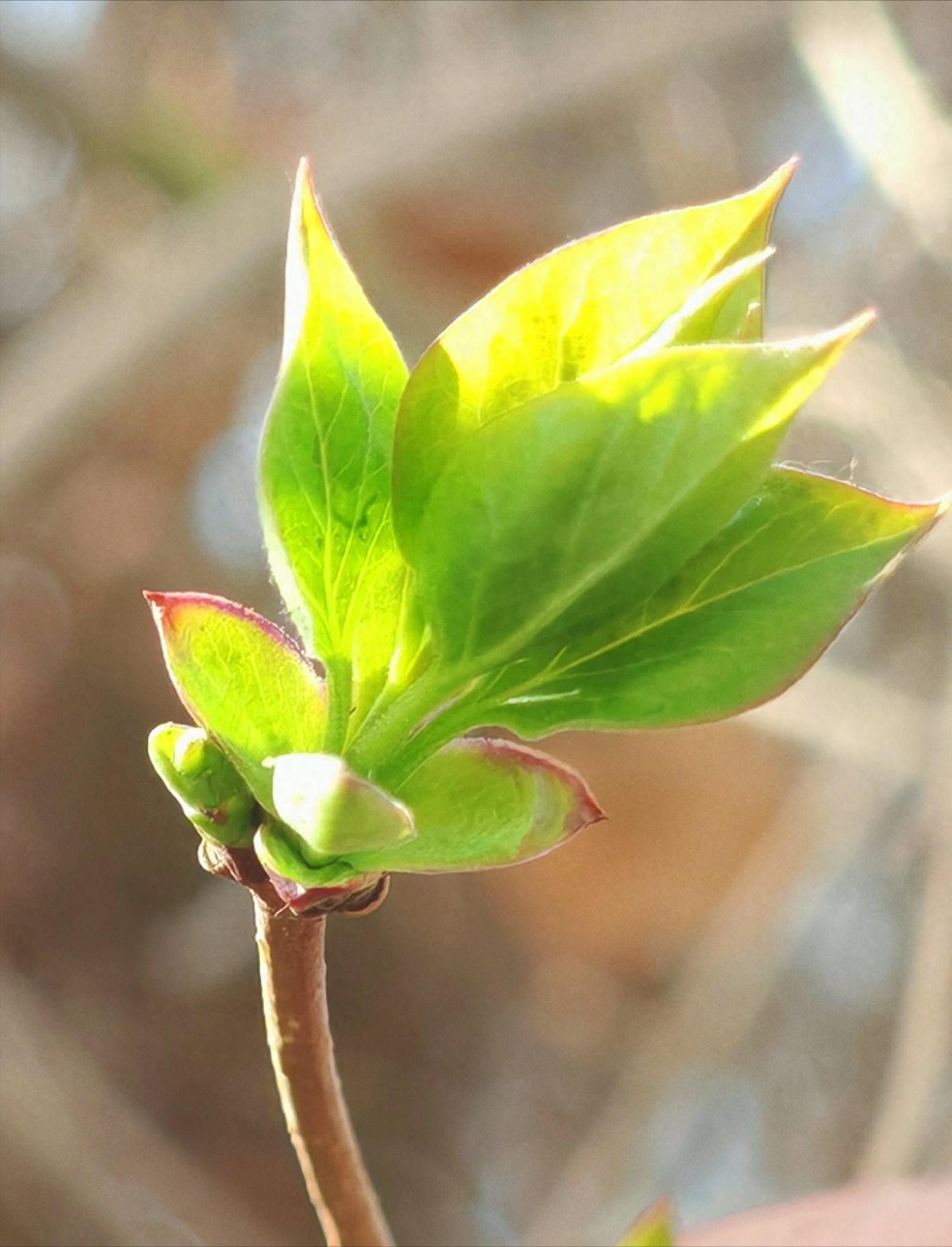 摄影师说:你看这簇新绿,裹着浅红的边,像怯生生又雀跃着的梦——阳光给叶脉镀上金,每道纹路都在说“生长”。