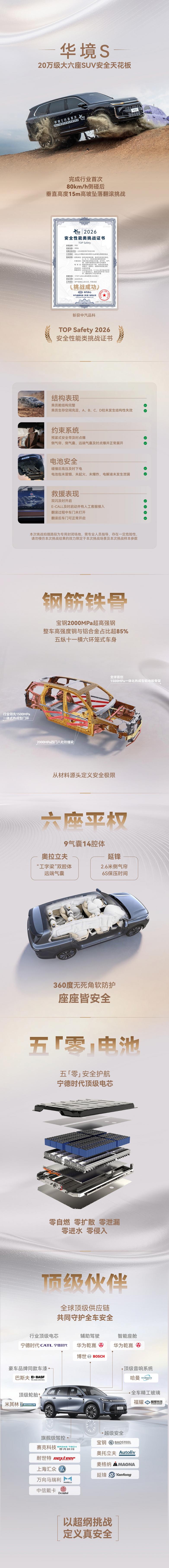 对大多数注重安全的用户而言,官网上看起来全面的数值、车型的各种安全标签不仅不能打消疑虑,反而让人陷入焦虑,这些强度数据到底有没有用?这些安全专利到了真实事故中到底能扛住多大的冲击?即将在2026年上半年上市的华境S,以一种简单粗暴的方式给出了答案:20万级大六座SUV哪款更安全。