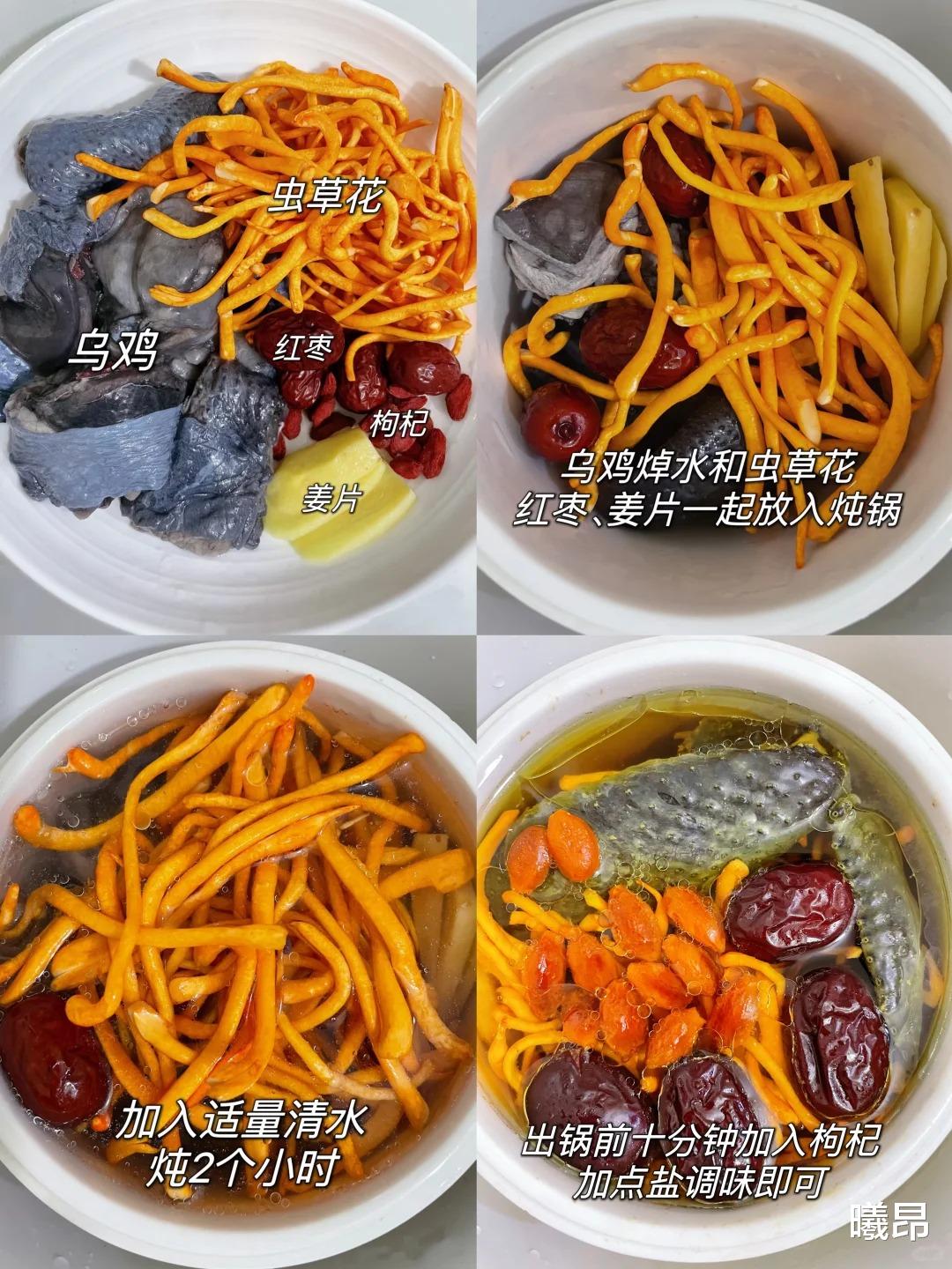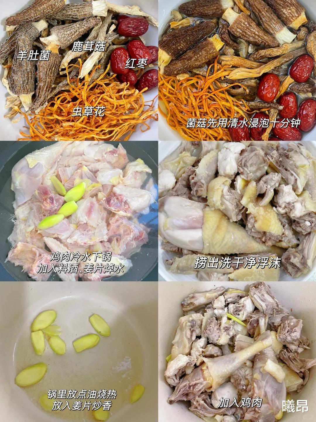 1.乌鸡焯水洗净,虫草花温水泡 10 分钟。