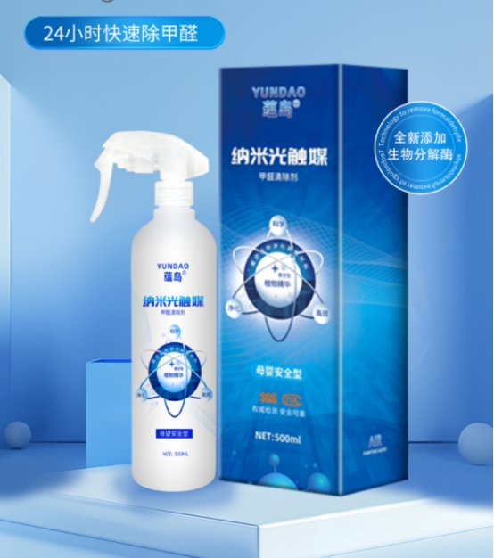 蕴岛在除甲醛行业中算是拥有不俗的口碑,其除甲醛喷雾产品核心优势在于采用了双成分,即光触媒+蛋白分解酶二合一,能够深入渗透板材内部直接和甲醛污染源反应,将甲醛分解为无毒无害的水和二氧化碳,这种直接从源头分解让它的效果更加彻底,且不会造成二次污染。不仅如此,蕴岛除甲醛喷雾还解决了传统光触媒需要光照才能反应的限制,在成分中添加了Ag+纳米银离子,大幅提升光触媒催化效率,使喷雾无需紫外线照射也能自主持续反应。
