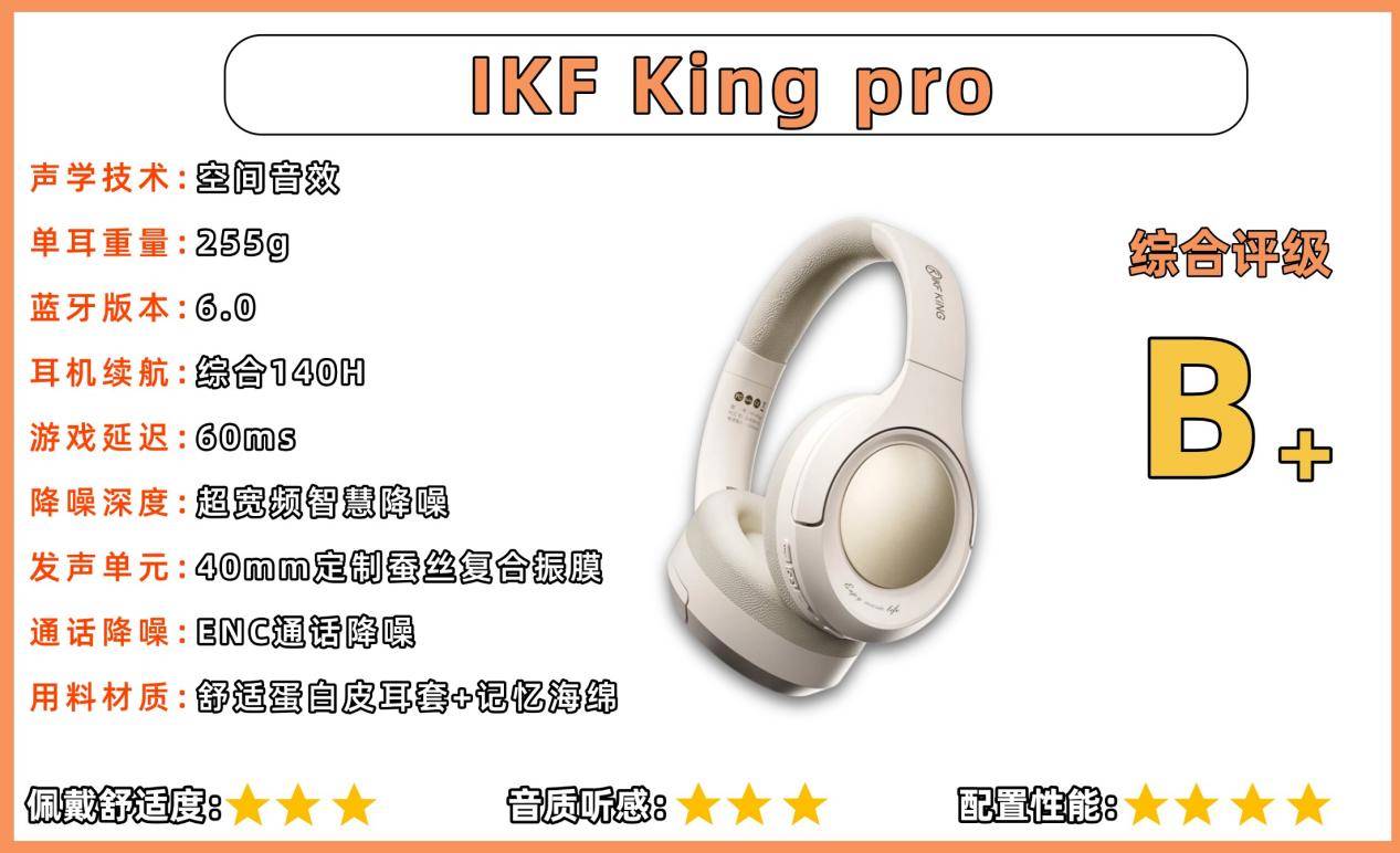 iKF King Pro的耳罩和头梁顶部都采用的是全包耳的蛋白皮,内部填充的是零压感记忆棉,整机仅255g重,在重量上分布的不够均匀,久戴的话能感受到一些负重感。