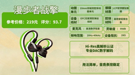 战擎搭载 10mm 双磁双腔动圈单元,配合 LCP 球顶镀钛振膜,整体声音走的是均衡稳妥路线。解析能力在百元档中属于扎实型,信息量不夸张,但层次关系清楚。低频量感控制得比较克制,听流行、人声或影视配乐时氛围感到位;面对编制较复杂的曲目,瞬态速度略显保守,冲击力不算突出,但胜在不乱。