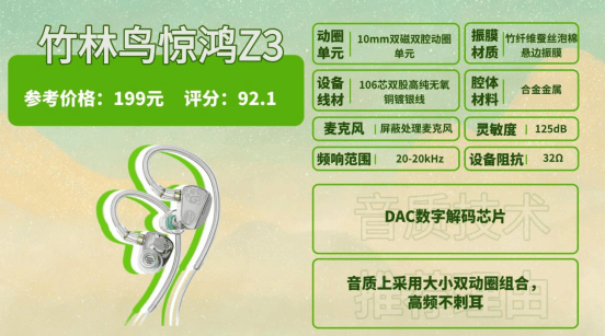 声音取向上,Z3 的双动圈结构更偏温润耐听,高频收敛,不追求锋芒,整体亮度较为克制。低频下潜深度尚可,量感控制在适中区间,但节奏偏慢,遇到强调冲击力的电子乐或鼓点时,爽快感略有不足。如果偏好干净利落或高频通透的风格,Z3 可能不算第一选择。它内置 DAC 解码芯片,直插手机也能保持稳定输出,对前端设备依赖较低。线材使用镀银高纯度导体,声音表现稳定,但线身容易缠绕,且没有线控设计,日常操作便利性一般。麦克风在安静环境下通话清晰,但在有风噪的场景中抗干扰能力有限。整体功能配置偏向传统有线耳机路线,玩法不多,风格朴实。