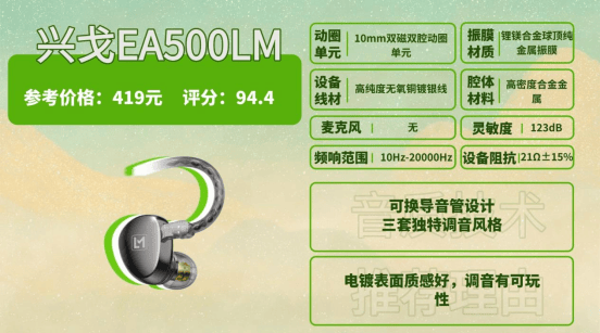 机身采用高密度金属一体成型结构,表面电镀处理让外观细节显得更精致。导音管角度贴合耳型,搭配随机附送的多种耳帽,长时间佩戴稳定性不错。金属外壳在冬季触感略凉,是体感上的小缺点,但对整体舒适度影响不大。线材为无氧铜镀银配置,耐用性和传导性能处在合理水准。EA500LM 支持可换线与可换导管设计,可玩性在同价位中算是偏高的,适合喜欢微调声音的玩家。不过本体未配备麦克风,如果有频繁通话需求,它不太适合作为全场景唯一耳机。