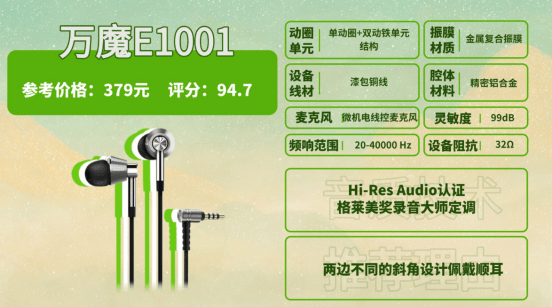E1001 采用单动圈加双动铁的三单元配置,金属复合振膜让声音整体偏向自然取向。初听并不会给人强烈刺激感,随着使用时间增加,中频厚度和声音密度会逐渐显现出来。整体调校偏均衡,低频量感适中不过分强调,高频控制得比较克制,不容易出现尖锐感,属于比较百搭的声音风格。