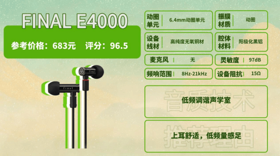 声音部分搭载 6.4mm 动圈单元,配合阳极氧化黑色铝合金外壳,整体调性偏向温和松弛。它并不强调极限解析,反而追求自然连贯的听感,高频略微收敛但质感细腻,弦乐听起来柔顺耐听,不容易疲劳。声场规模不算大,但边界感不强,整体氛围感比较舒展,不会有明显压迫感。如果结像再集中一些,定位会更清晰,不过这种略微松散的呈现方式,对喜欢轻松听感的用户来说反而更友好。线材采用高纯度无氧铜,耐用性可靠;阳极铝腔体也不易刮花,整体走的是耐用实用路线。支持 MMCX 换线,后期通过线材或前端调整声音风格也比较方便。没有内置麦克风算是一个小遗憾,更适合纯听音场景。整体来看,E4000 更适合偏好暖色调、舒适佩戴以及不追求刺激高频的用户。