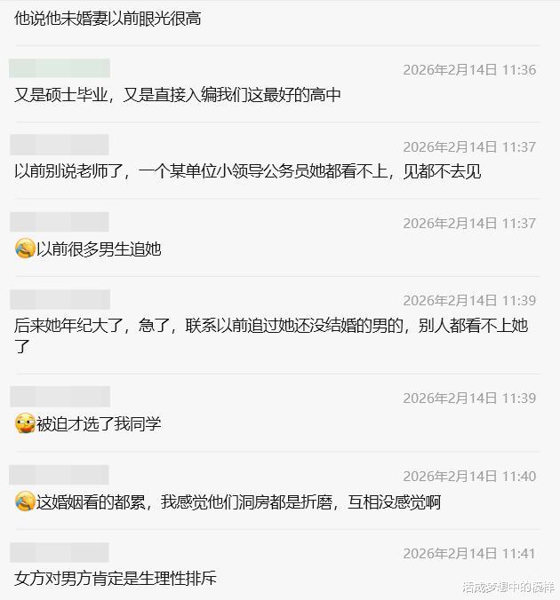 这明显是不健康的婚姻,我看不到爱的期待和幸福,看不到互相支持与理解,看到的尽是算计与无奈。虽然这种结合,不管女方还是男方自己,都觉得男方高攀了,但这才可怕。