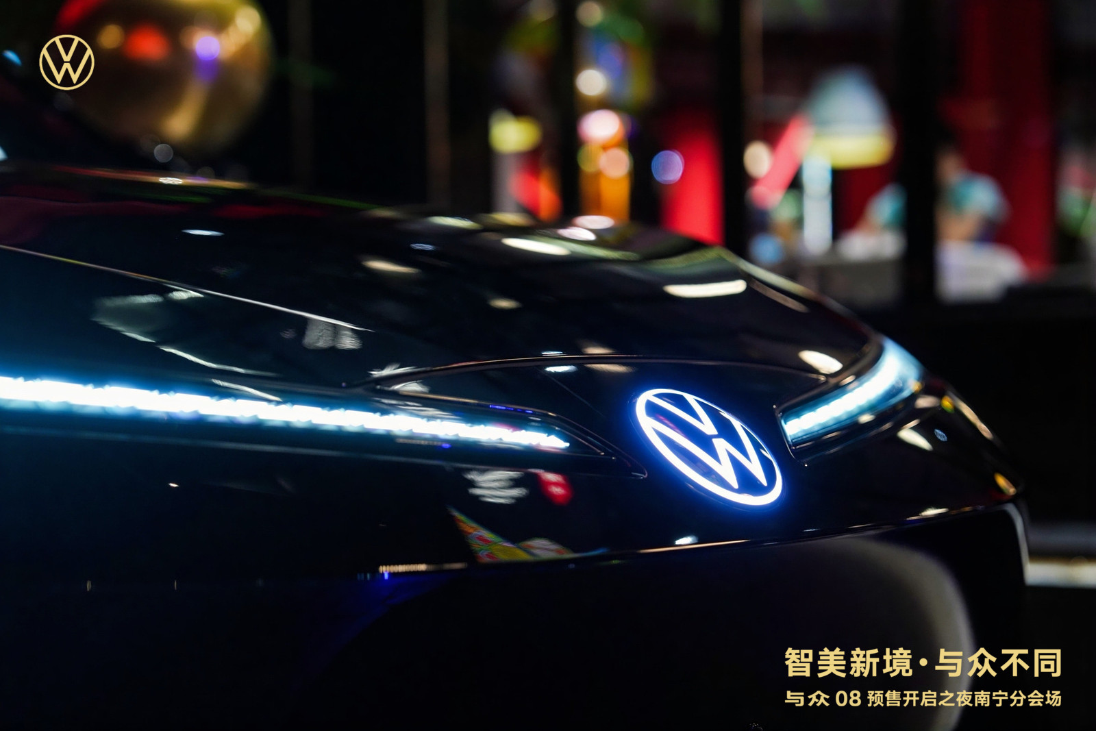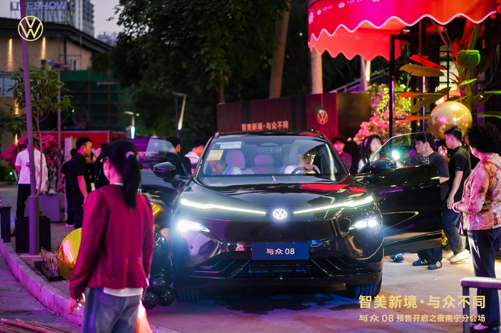 3月26日晚,大众汽车与小鹏汽车首款联合开发的车型与众08在合肥开启预售,预售价为23.99-29.99万元。在南宁民歌湖之畔,“智美新境·与众不同——与众08预售开启之夜南宁分会场”同步举行。活动邀请了南宁本地主流汽车媒体代表及ID.与众车主代表齐聚一堂,通过连线直播与实车品鉴,共同见证了与众08“跃级智美大五座SUV”的重磅登场时刻。